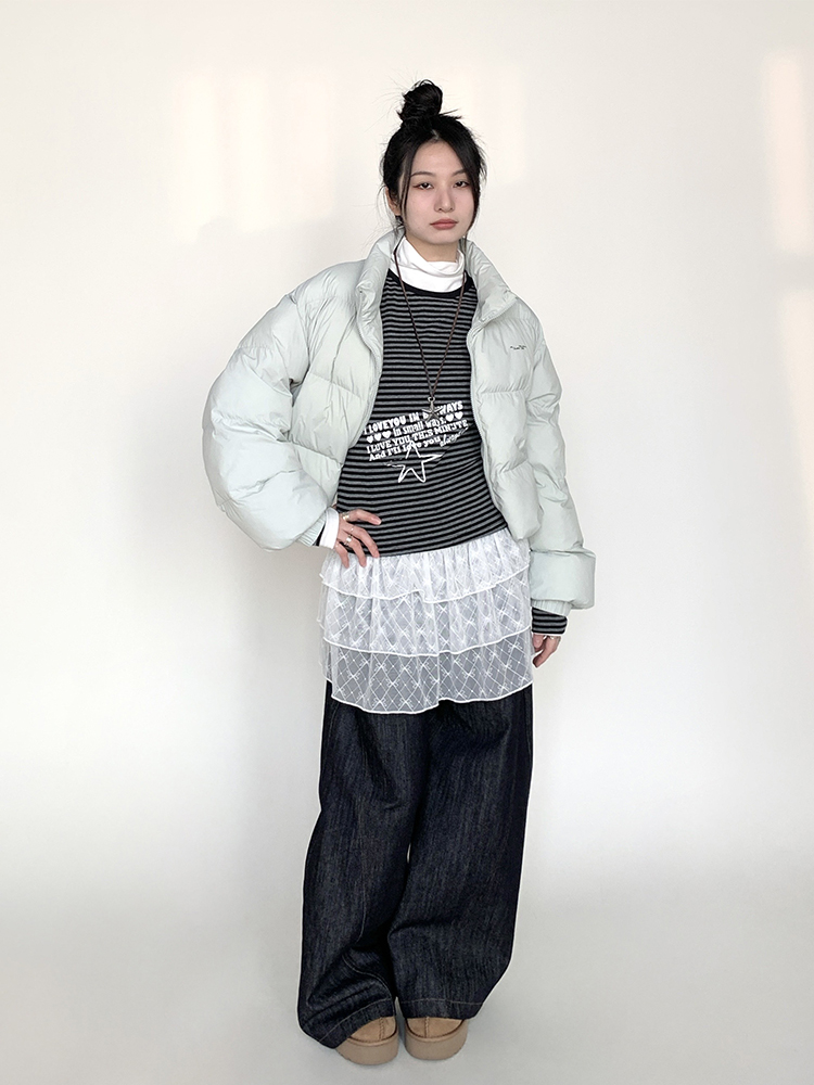 Embrace the chill of autumn and winter with our Mint Sea Salt Green Stand Collar Short Loose Versatile Puffer Jacket. This stylish outerwear piece features a flattering loose fit that ensures comfort while keeping you warm, and its stand collar adds a chic touch to your outfit. Perfect for layering over your favorite sweaters, this puffer jacket is a must-have for any fashion-forward wardrobe. Don’t miss out on the ultimate combination of style and functionality—add this essential jacket to your cart today!