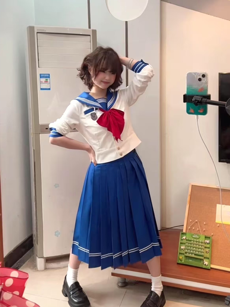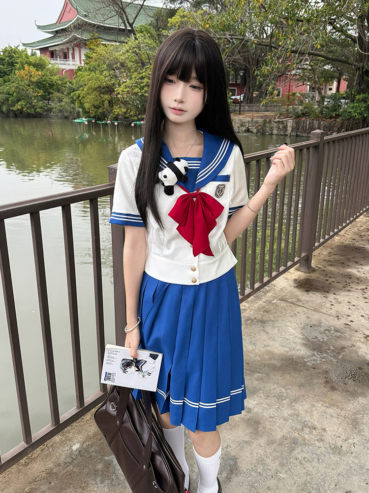 | Color | Complete set (short-sleeve top + long skirt + bow tie + badge), Complete set (short-sleeved top + short skirt + bow tie + badge), Royal blue long dress, Royal blue short skirt, Royal blue top + bow tie |