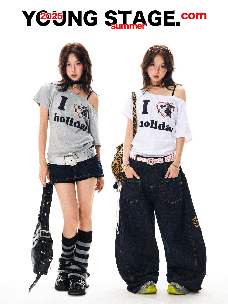 Concert Outfit Off Shoulder Puppy Heart Print Short Sleeve T- shirt Women Vintage Summer Top High-quality product featuring summer fits, concert outfit ideas, spring outfit and more. Modern design that fits the latest trends. Premium materials ensure durability and comfort. Order now for special offers! Product designed with attention to every detail. Suitable for all occasions and personal styles.
