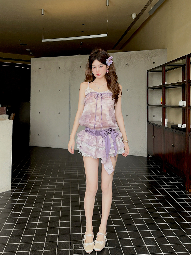 Concert Outfit One Shoulder Lace Strap Dress Women Italian Garden Floral Print, Summer Slim Fit, Short Skirt
