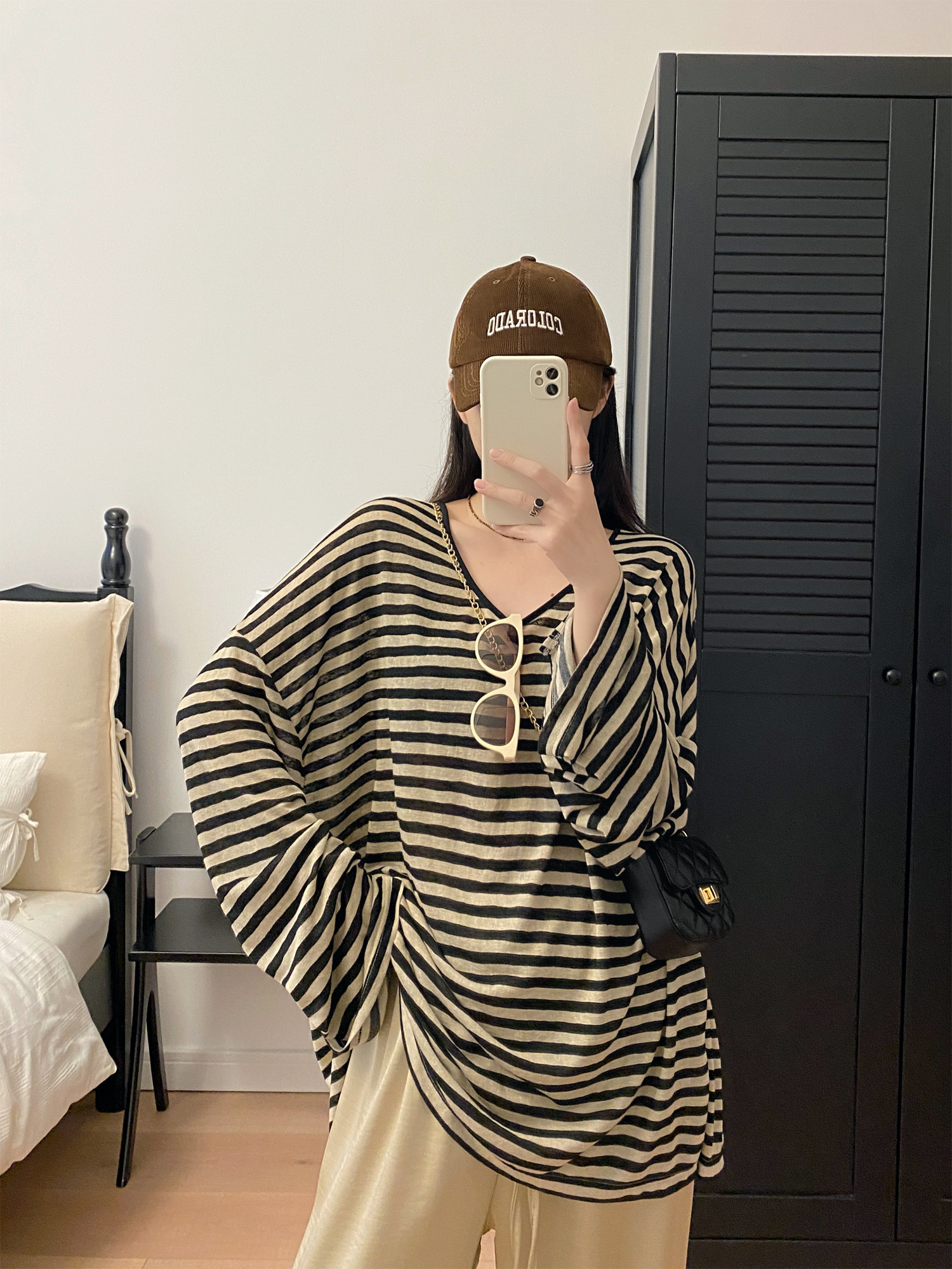 Elevate your summer wardrobe with our Oversized Striped U-Neck T-Shirt for Women in a vibrant Sun Grapefruit color. This thin long sleeve top combines a relaxed fit with stylish stripes, offering both comfort and a chic Korean-inspired aesthetic. Perfect for sun protection, it’s an essential piece for those sunny days. Don’t miss out on this versatile addition to your collection—add to your cart today!