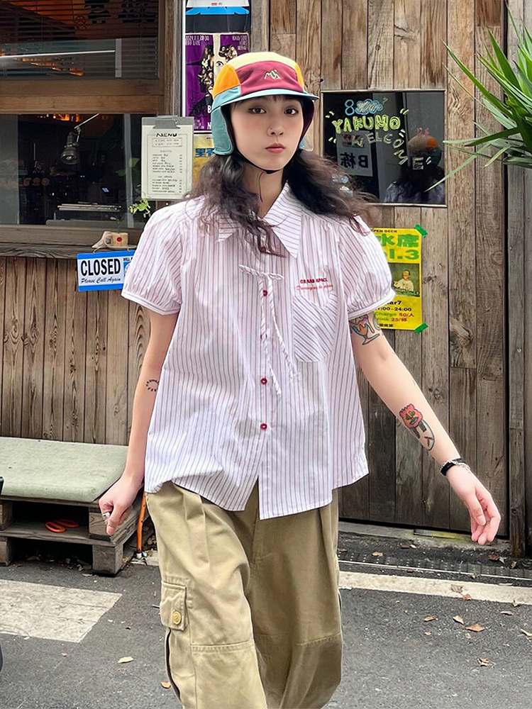 Elevate your summer wardrobe with our Pink Striped Short Sleeve Blouse for Women, featuring a trendy puff sleeve design that offers both style and comfort. This loose-fitting top is perfect for creating a slimming silhouette while keeping you cool on warm days. Pair it with your favorite jeans or shorts for a chic look that transitions effortlessly from day to night. Don’t miss out on this must-have piece—add it to your cart today!