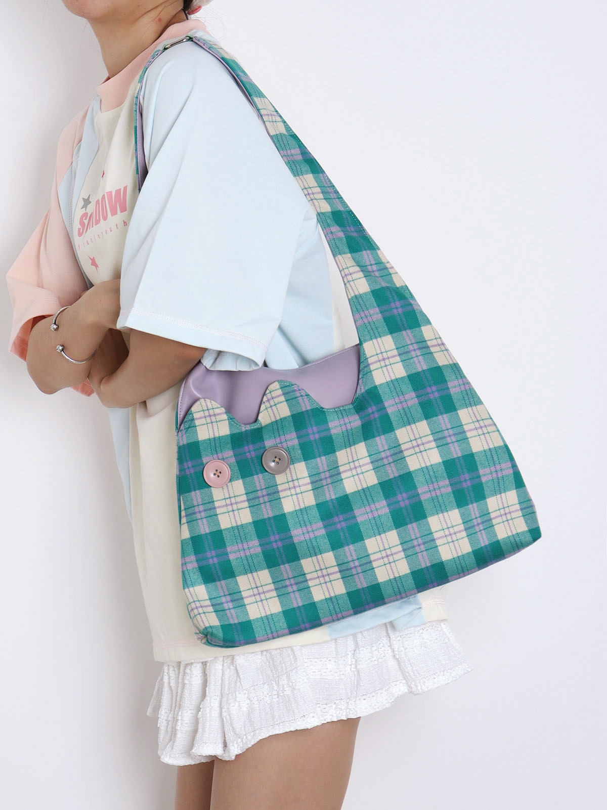 Elevate your style with our Plaid Color-Blocking Cat Shoulder Bag, a unique patchwork design that combines fun and functionality. This spacious crossbody bag effortlessly fits all your essentials while showcasing a trendy aesthetic that complements any outfit. Its large capacity makes it perfect for daily use, while the cute cat motif adds a playful touch to your fashion accessory collection. Don’t miss out on this must-have addition to your wardrobe—add it to your cart today!