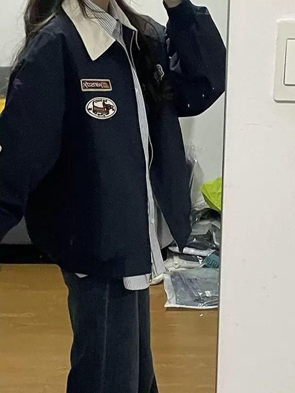 Concert Outfit Plus Size Retro Embroidered Patch Lapel Jacket Women Spring Autumn Baseball Curvy Fits