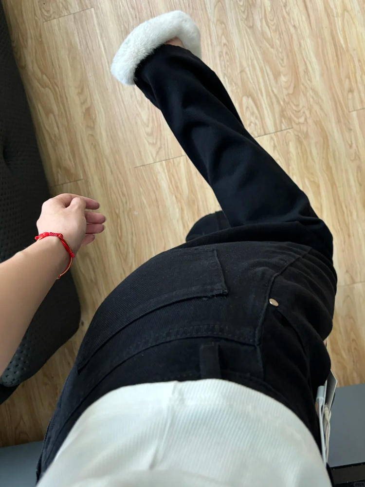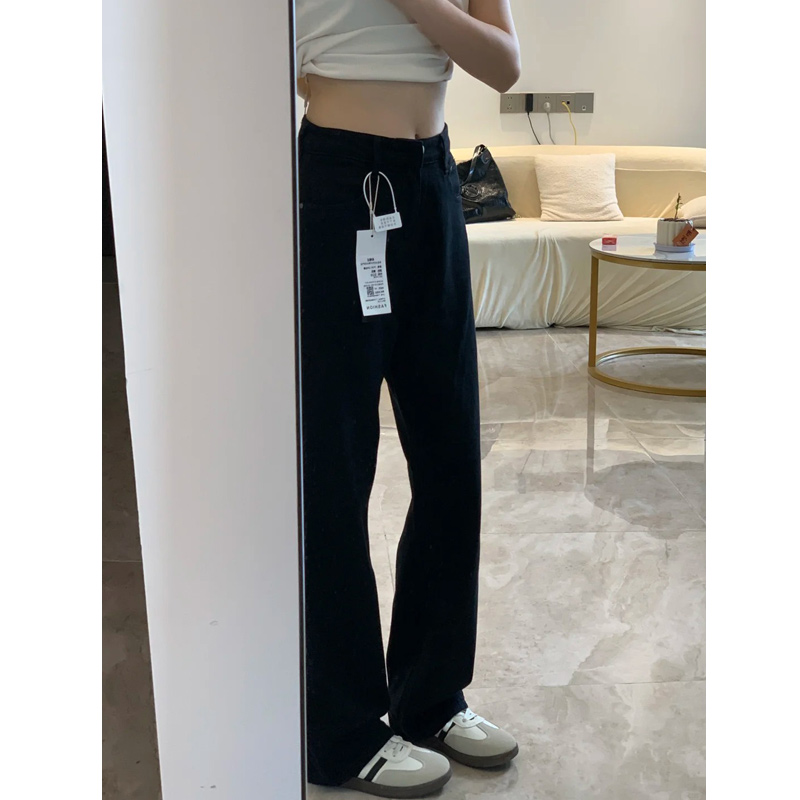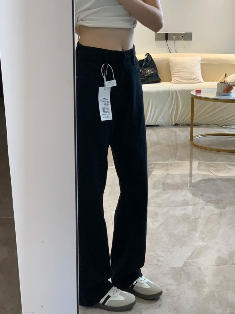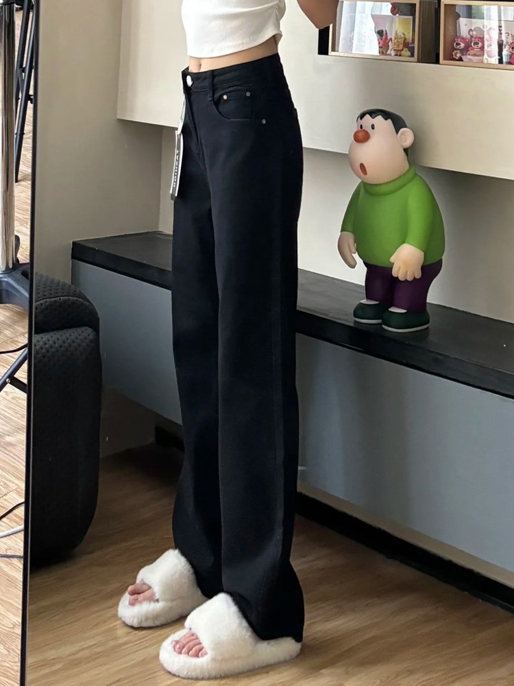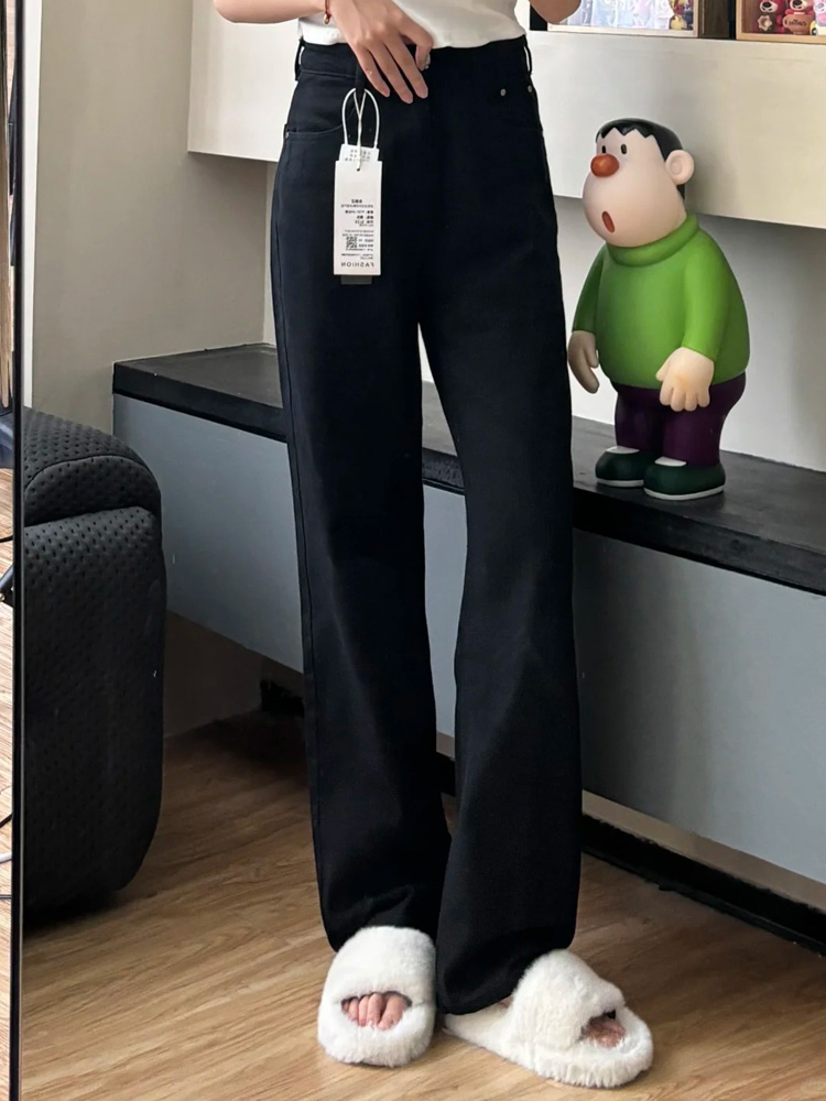 Concert Outfit Plus Size Black Straight Leg Jeans Petite Women, Loose Fit, Casual