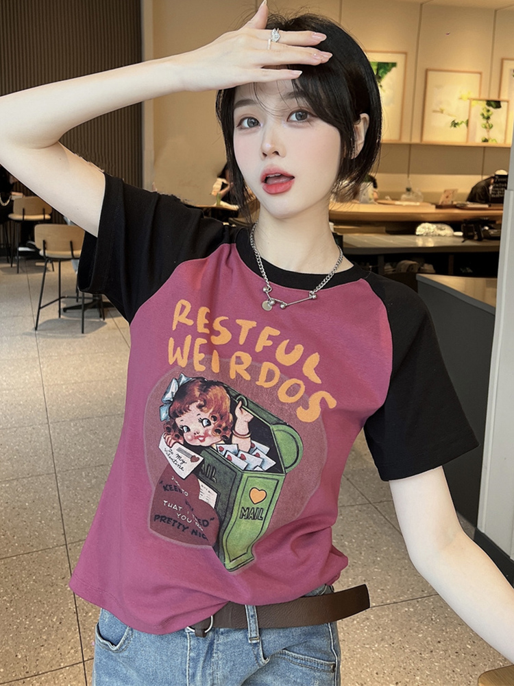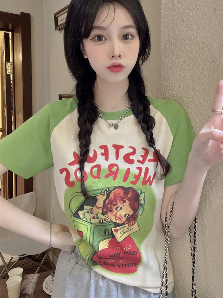 Concert Outfit Plus Size Cartoon Printed Short Sleeve T- shirt Women Summer Sweet, Spicy, Loose Fit, Belly Covering, Age Reducing Top