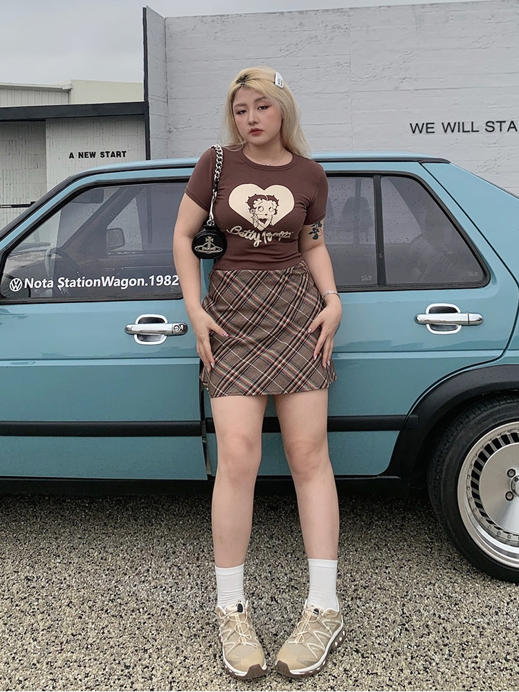 Elevate your wardrobe with our Plus-Size Color-Blocking Plaid Half-Length Skirt, designed to blend sweet and spicy American style effortlessly. This fashionable skirt features a flattering and comfortable fit that accentuates your curves while providing the perfect amount of stretch for all-day wear. The vibrant plaid pattern adds a pop of personality, making it a versatile addition to any outfit. Don’t miss out on this must-have piece—add it to your cart today and step out in style!