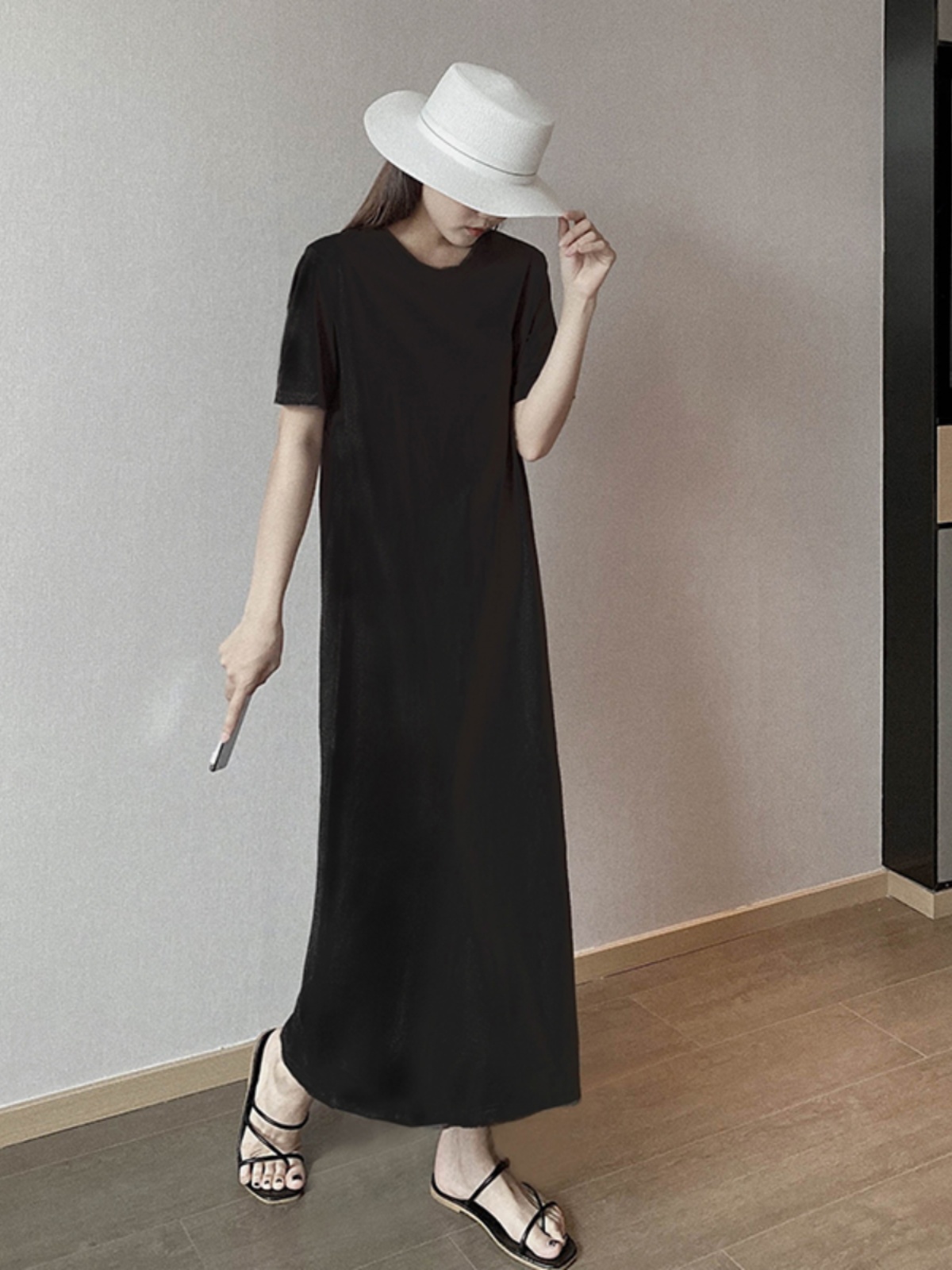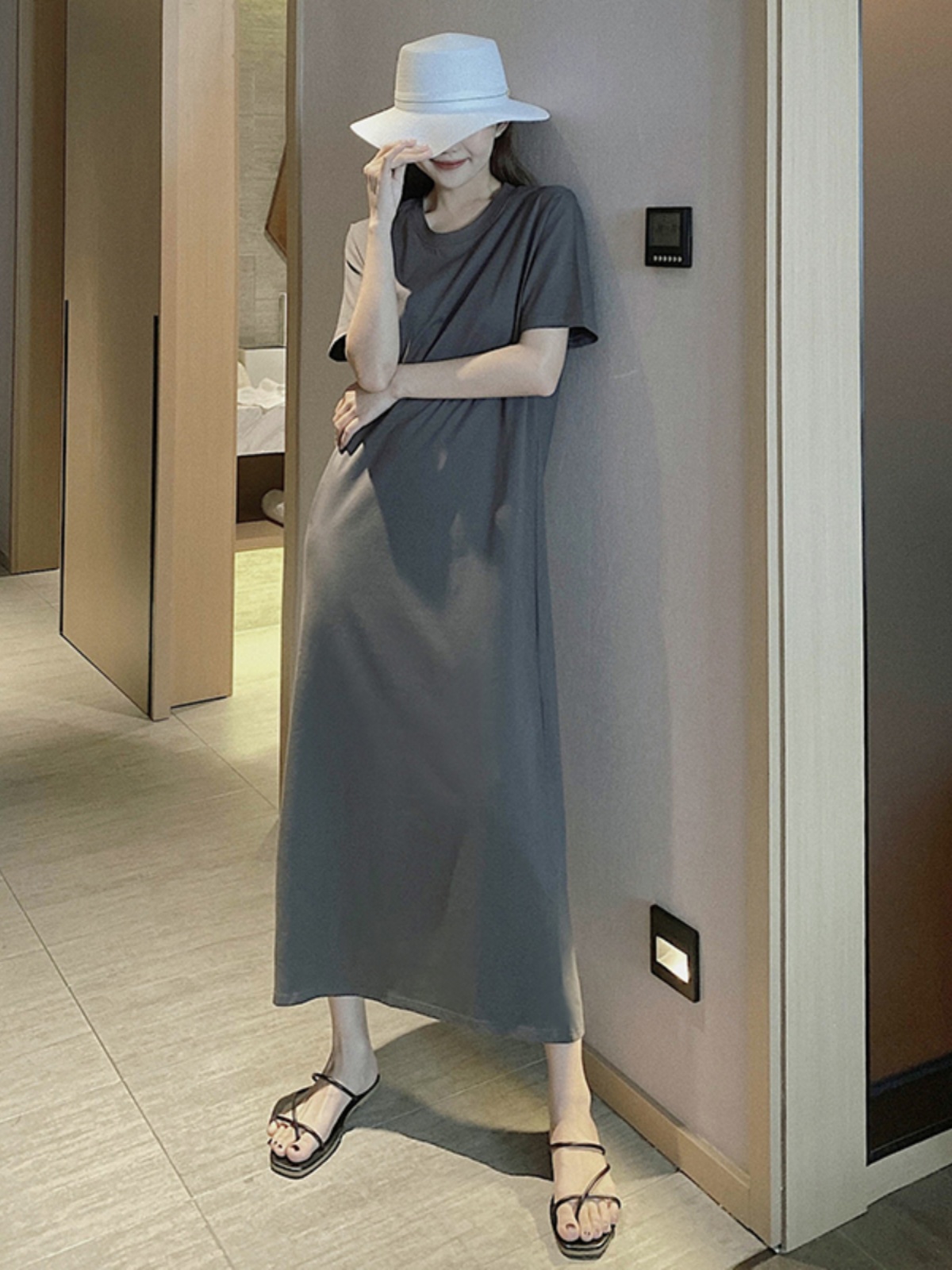 Elevate your spring and summer wardrobe with our Plus Size Cotton Round Neck Mid-Length Dress, designed for ultimate comfort and style. Featuring a loose fit with both short and long sleeves, this dress flatters every figure with its slimming straight skirt, making it perfect for any occasion. Embrace effortless elegance and stay cool in breathable cotton—add this versatile piece to your cart today and redefine your seasonal style!