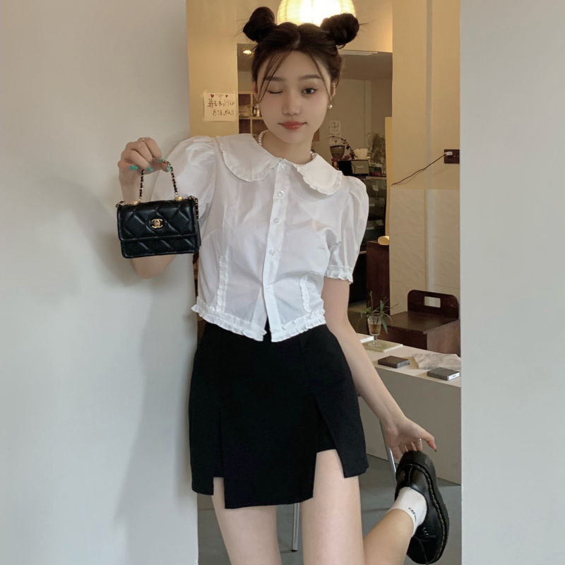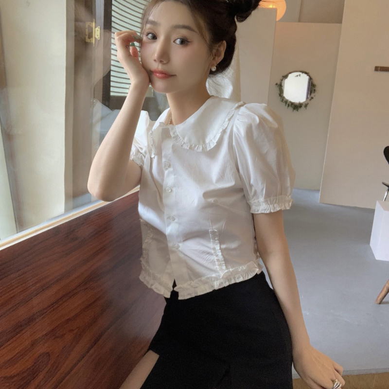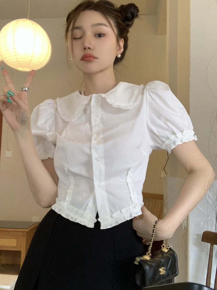 Elevate your summer wardrobe with our Plus Size Doll Collar Short Sleeve Shirt for Women, designed in a chic French style that flatters every figure. This slim fit crop top features a charming doll collar and short sleeves, perfect for pairing with your favorite high-waisted bottoms for a trendy yet comfortable look. Embrace effortless elegance and make a statement this season—add this must-have piece to your cart today!