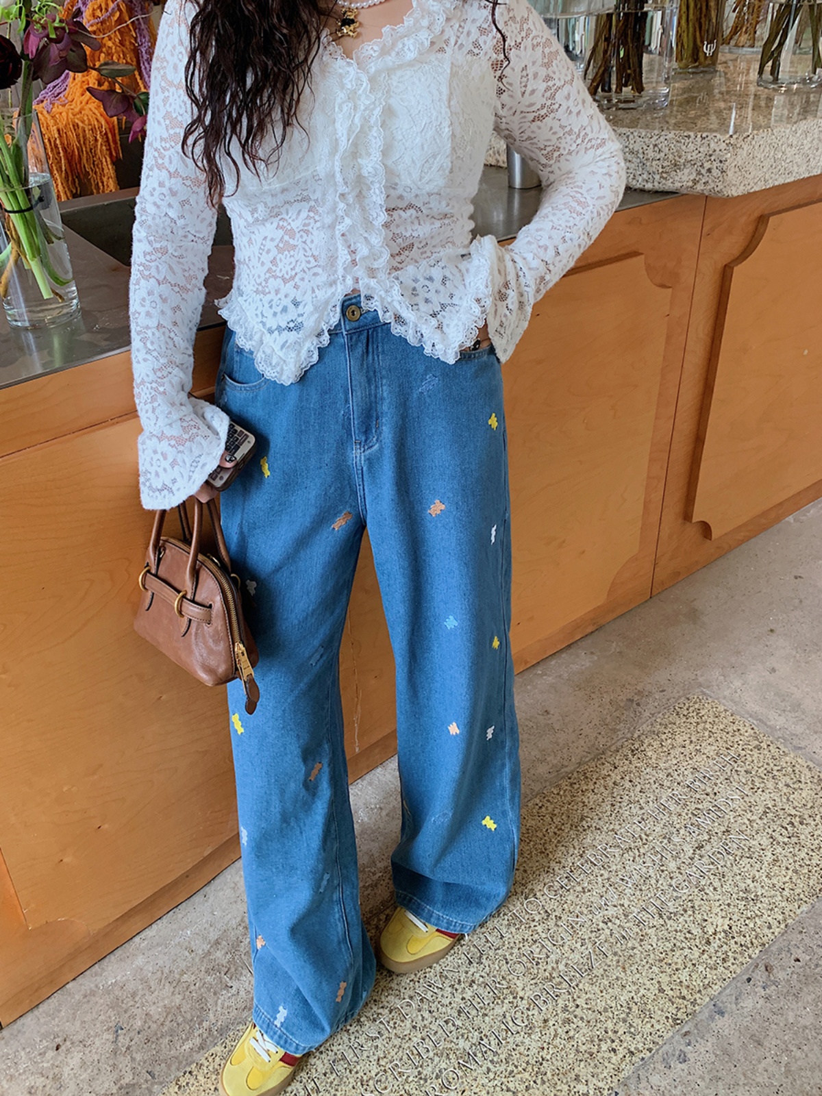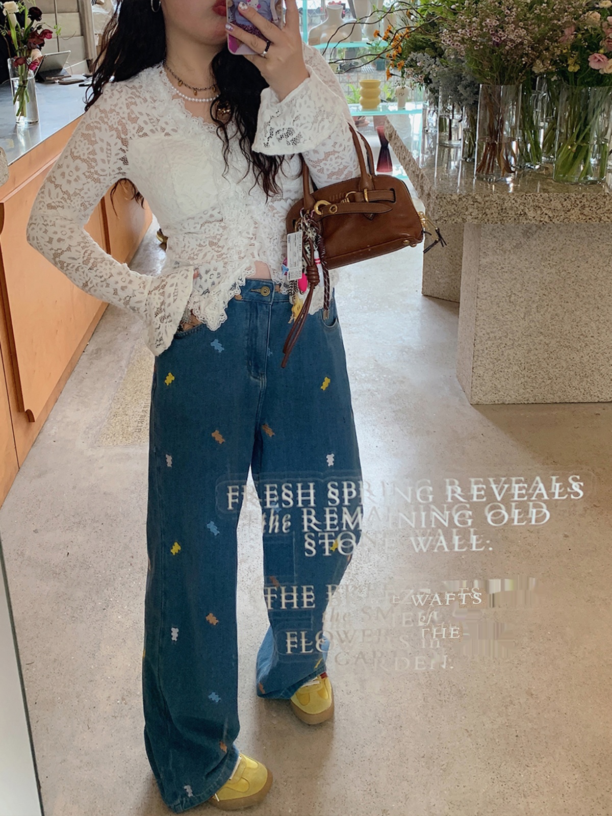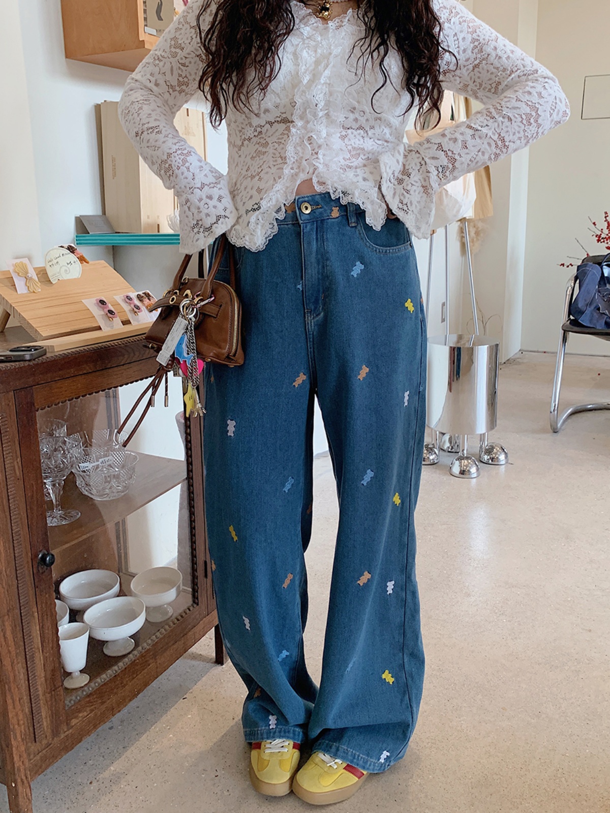 Step into spring and summer 2025 with our Plus Size Embroidered Bear Denim Pants, designed for the modern woman who embraces her curves. These flattering straight-leg blue jeans not only offer a comfortable fit but also feature delightful Y2K-style embroidery that adds a playful touch to any outfit. Perfect for casual outings or dressy occasions, these jeans are a must-have addition to your wardrobe. Don’t miss out on this trendy piece—add to your cart today!