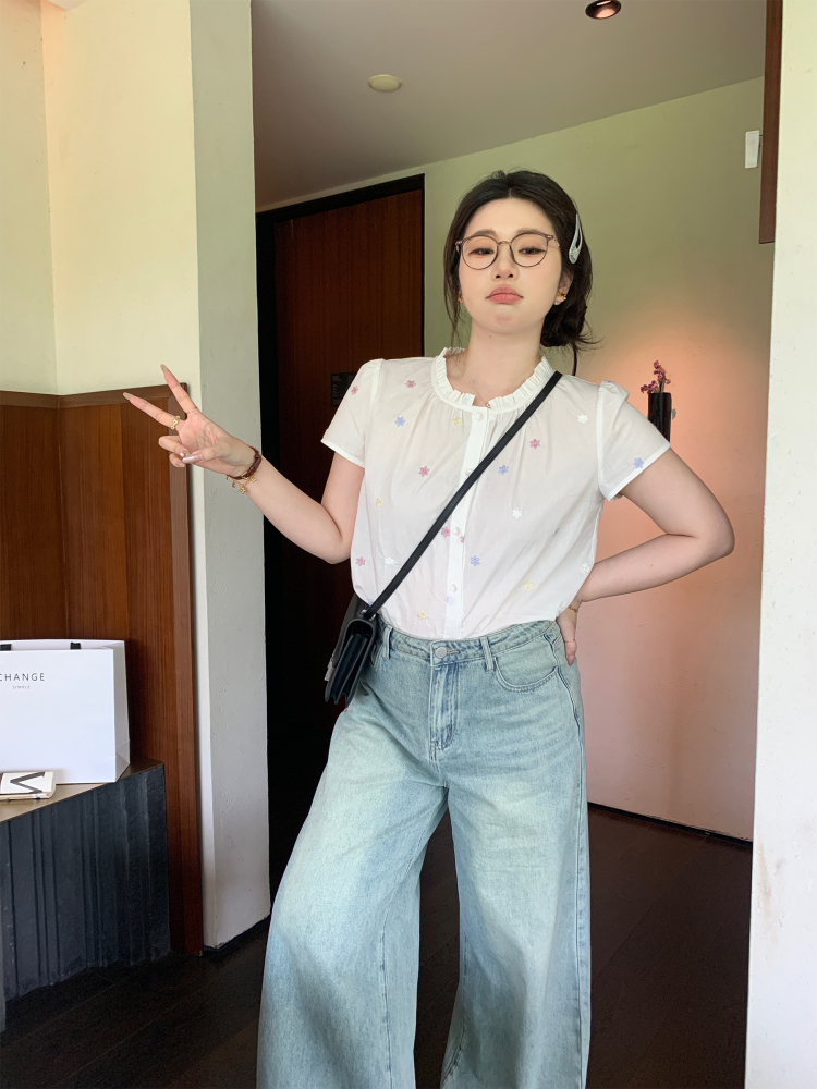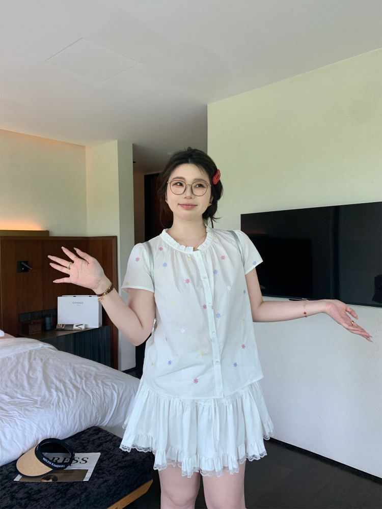 Concert Outfit Plus Size Floral Embroidered Short Sleeve Shirt Slightly Chubby Alice Summer Dream TopY2K High-quality product featuring concert outfit ideas, alice in wonderland costume, dream clothes and more. Modern design that fits the latest trends. Premium materials ensure durability and comfort. Order now for special offers! Product designed with attention to every detail. Suitable for all occasions and personal styles.
