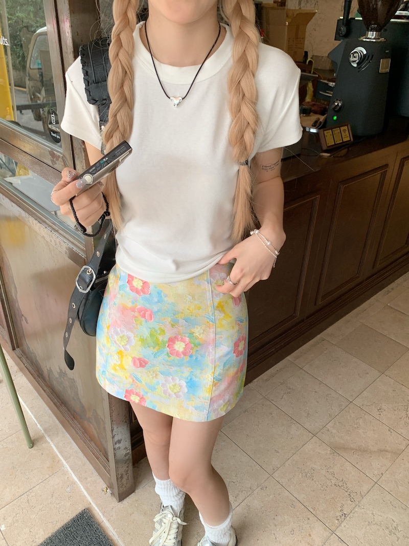 Concert Outfit Plus Size Floral Half Skirt Women Summer A Line High WaiBodycon Short Skirt Oil Painting