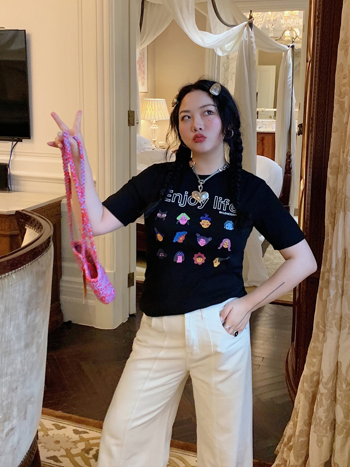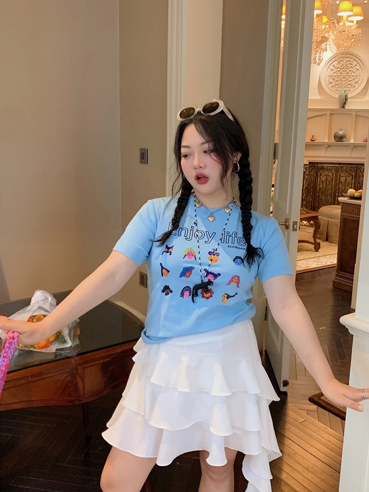 Concert Outfit Plus Size Gold Support Printed Short Sleeve T- shirt Women Slim Fit Summer Top in