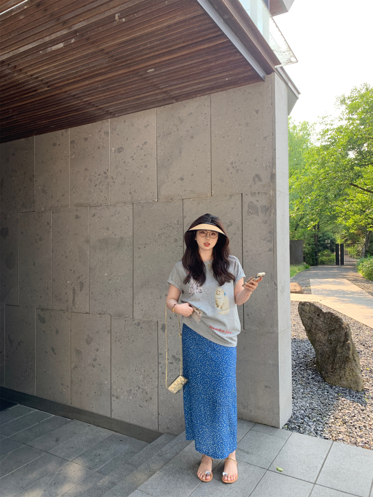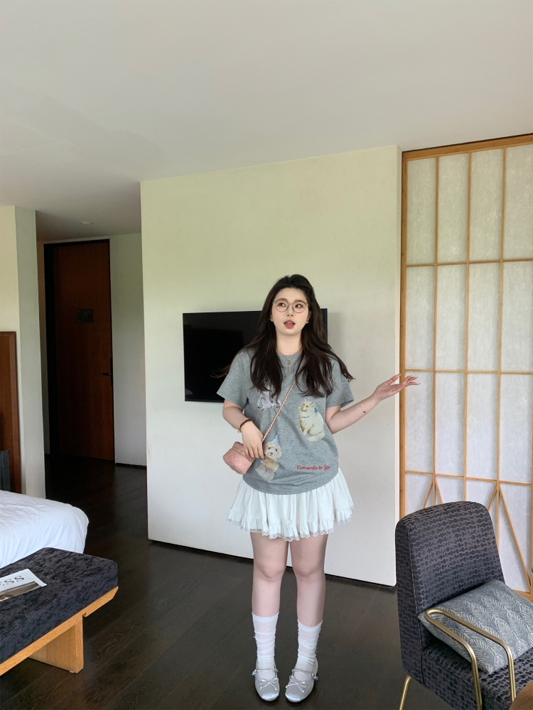 Concert Outfit Plus Size Gray Cartoon Print Animal Party T- shirt Loose Fit Short Sleeve Top Casual