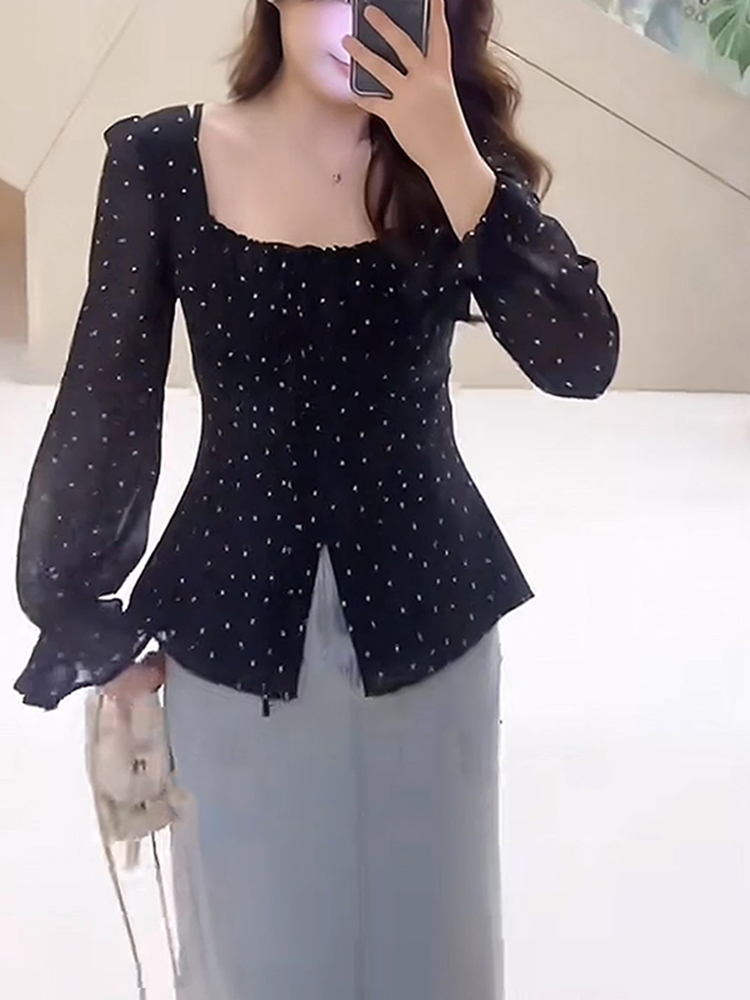 Elevate your wardrobe with our Plus Size Korean-Style Black Polka Dot Blouse, designed specifically for chubby figures. Featuring a flattering square neck and a waist-cinching silhouette, this blouse accentuates your curves while providing ultimate comfort and style. Perfect for both casual outings and special occasions, it’s a versatile piece that pairs beautifully with jeans or skirts. Don’t miss out on this must-have addition to your collection—add to your cart today!