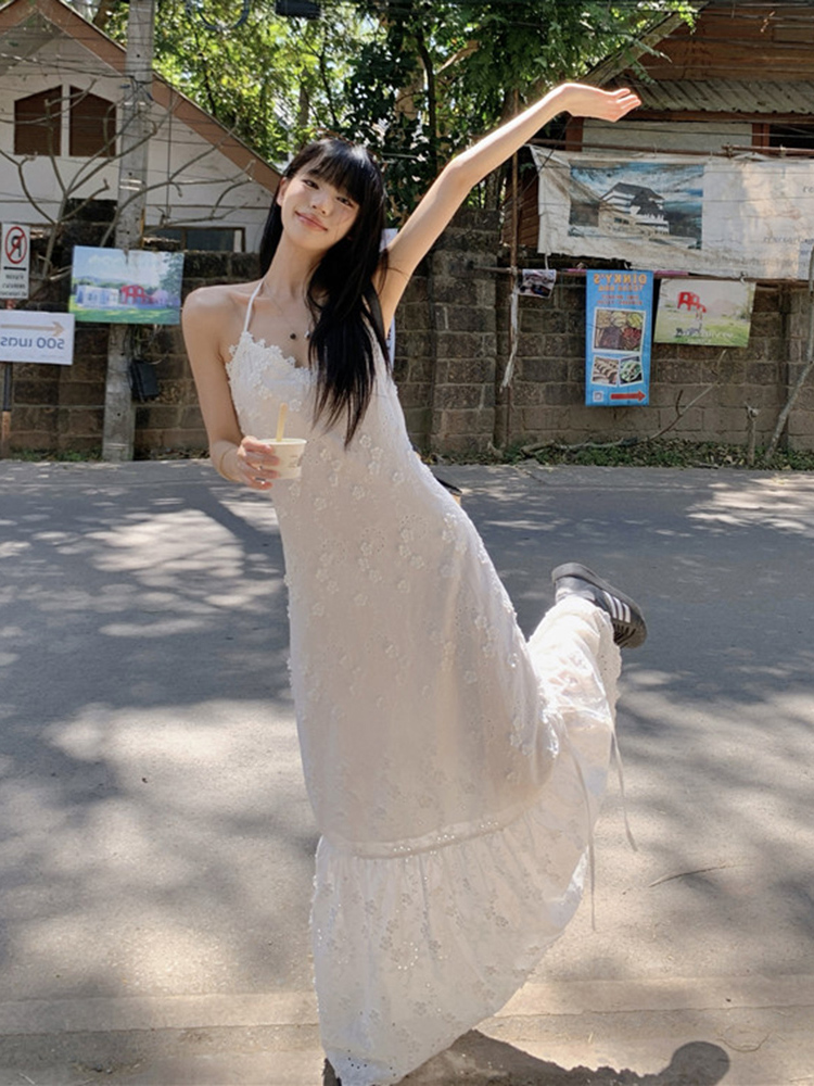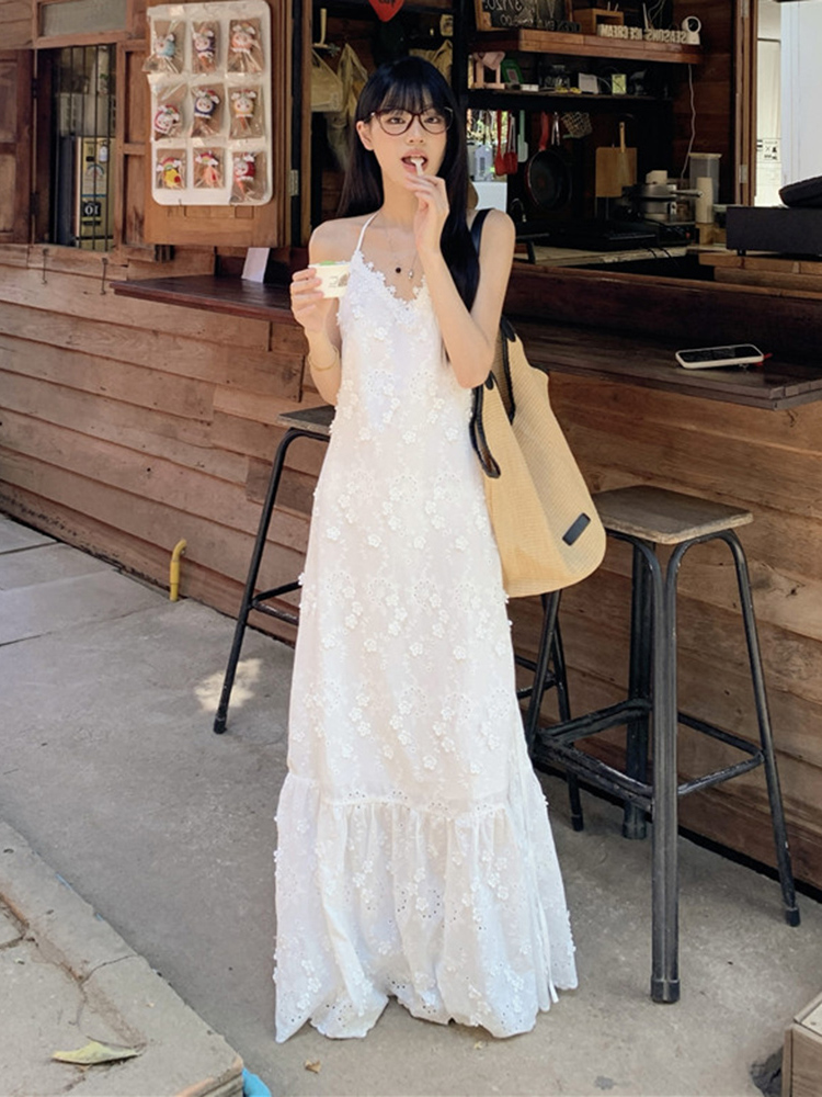 Concert Outfit Plus Size Lace Camisole Dress Women, Summer, Loose Fitting Backless A Line Long Dress, pired