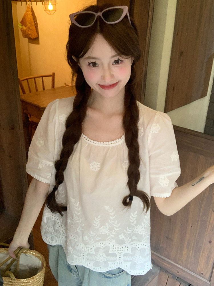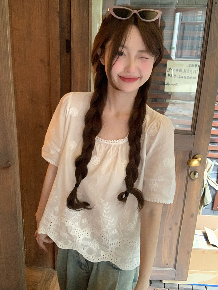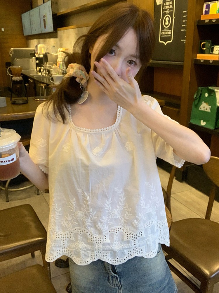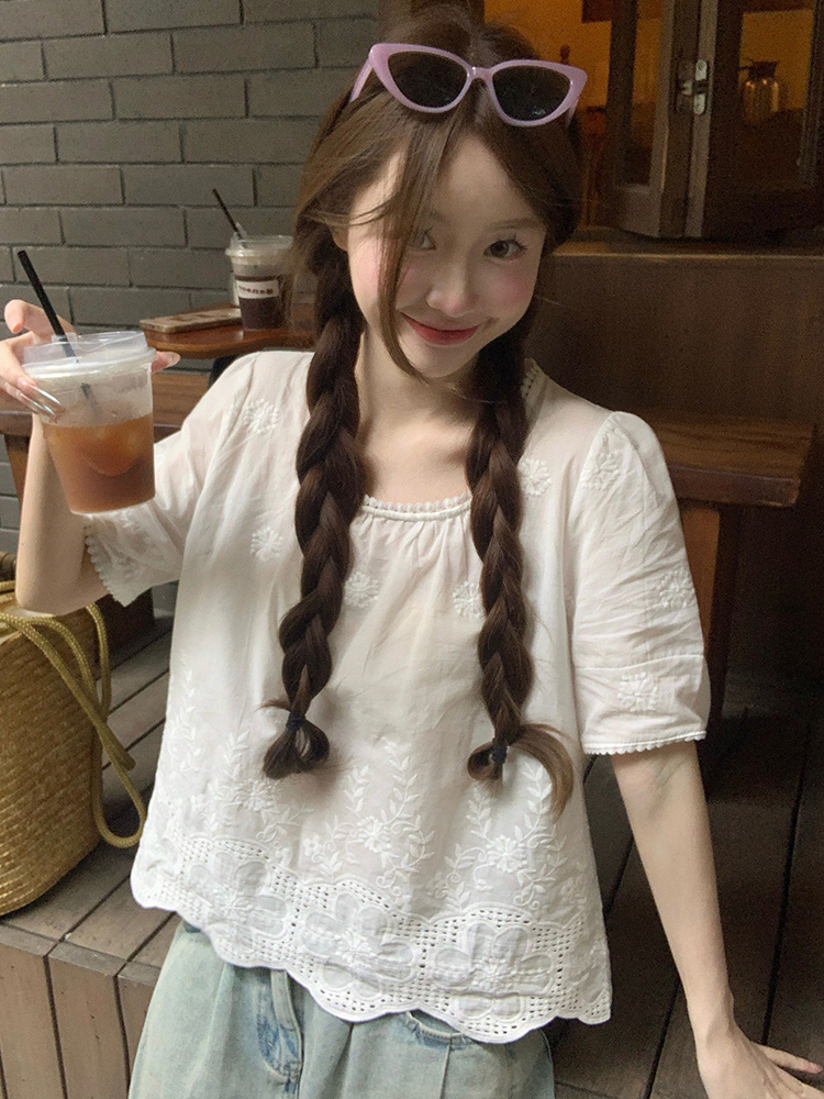 Concert Outfit Plus Size Lace Trim Square Neck Short Sleeve Shirt Cropped Summer Top Curvy Figures, Loose Fit, Flattering