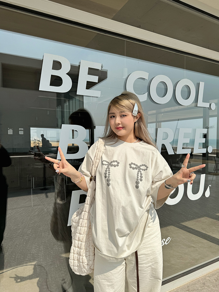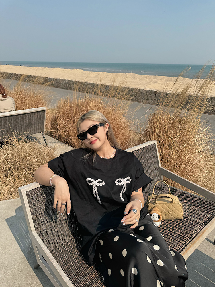 Elevate your wardrobe with our Plus Size Loose Pearl Bow Print T-Shirt in classic Black and White. Designed for the modern woman, this trendy and chic top features a stylish pearl bow print that adds a touch of elegance to your casual look. The loose fit ensures ultimate comfort while flattering your curves, making it a versatile fashion essential for any occasion. Perfect for pairing with jeans or skirts, this t-shirt will quickly become your go-to choice for effortless style. Add to your cart today and step out in confidence!