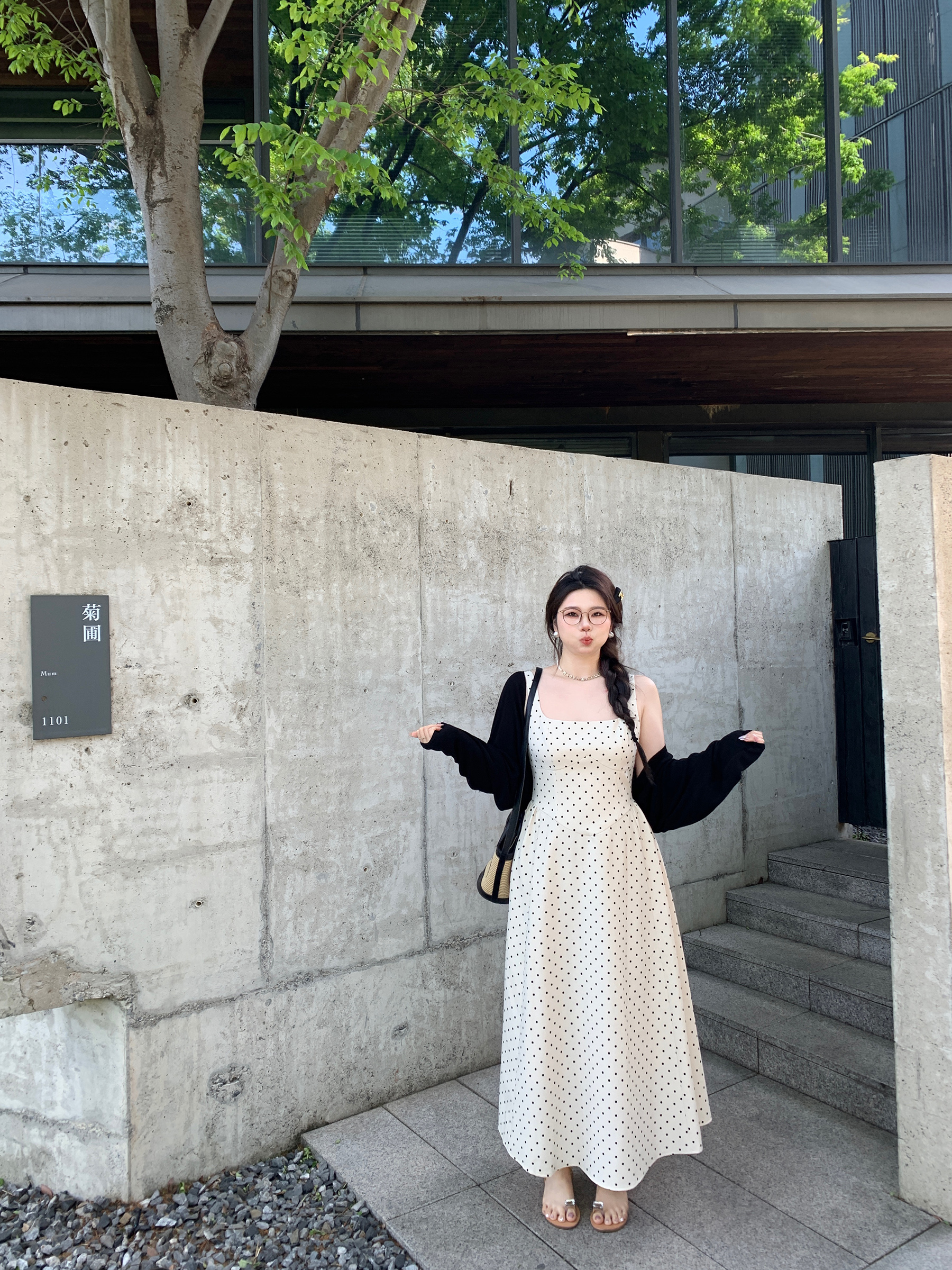 Elevate your wardrobe with our stunning Plus-Size Polka Dot Dress, featuring delicate spaghetti straps and an exquisite snow-topped black chocolate design. This waist-cinching dress beautifully accentuates your curves while exuding French elegance and high-end style, making it perfect for any occasion. Embrace your unique beauty and make a statement—add this must-have piece to your cart today!