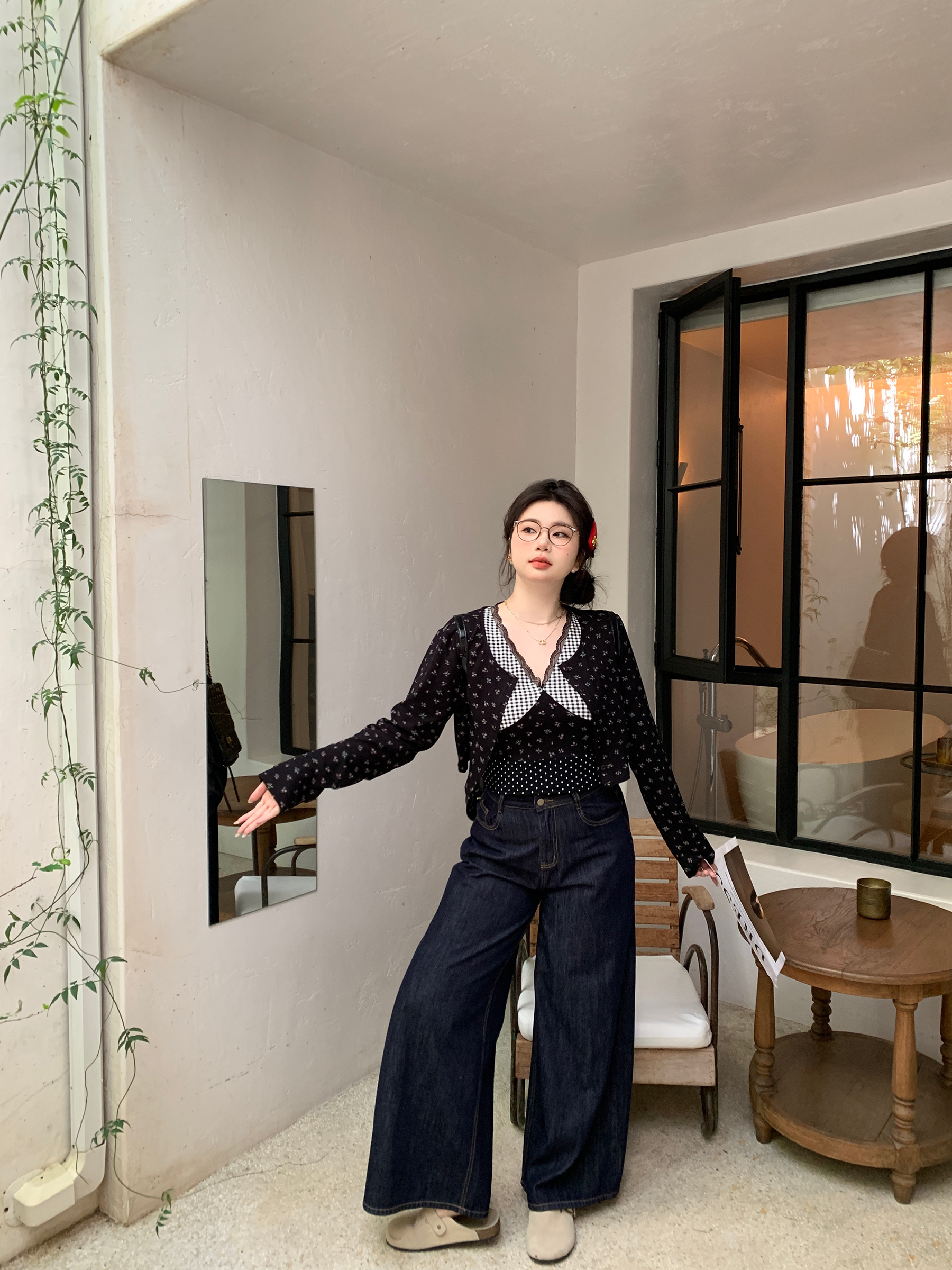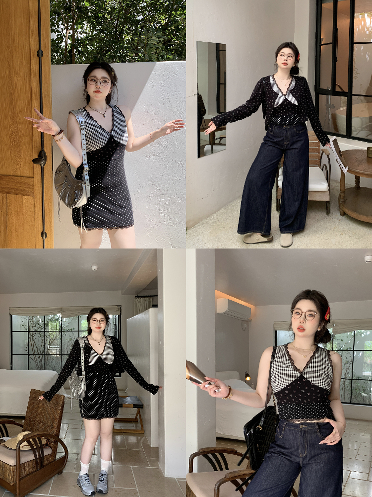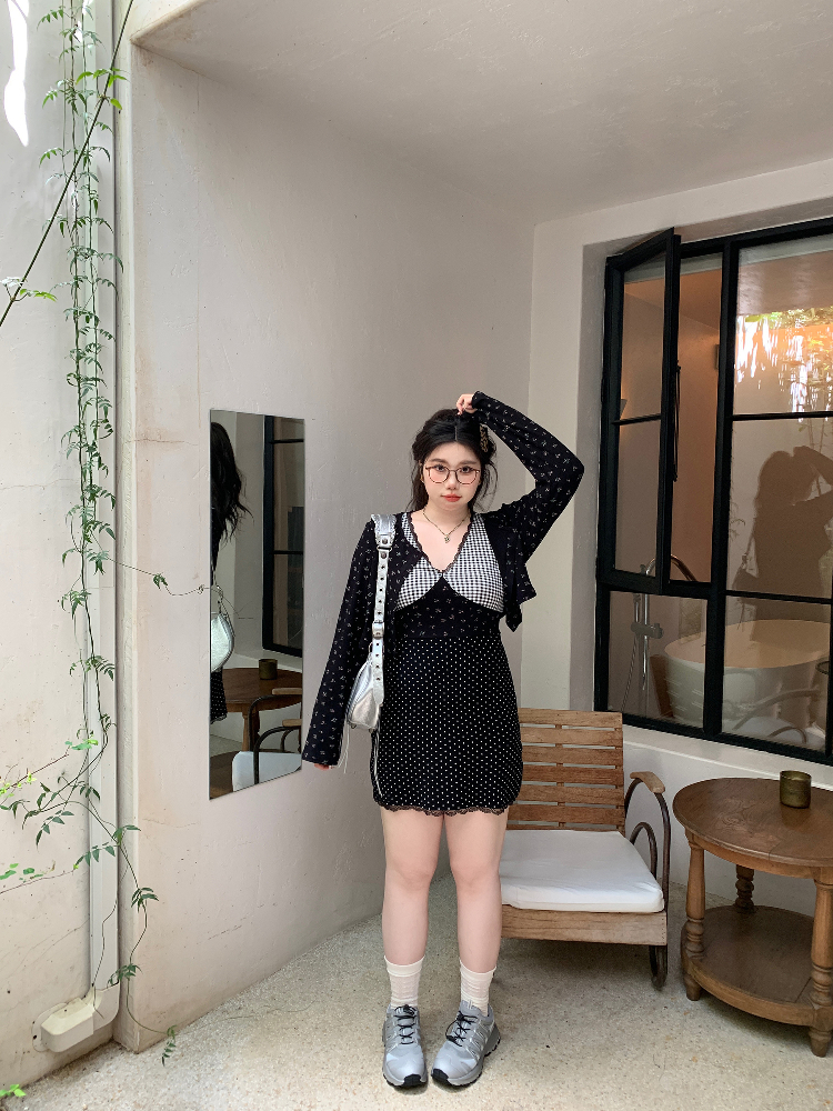 Concert Outfit Plus Size Sweetheart Plaid Splicing Floral Cardigan, V Dress Set Sweet, Spicy, Y2K