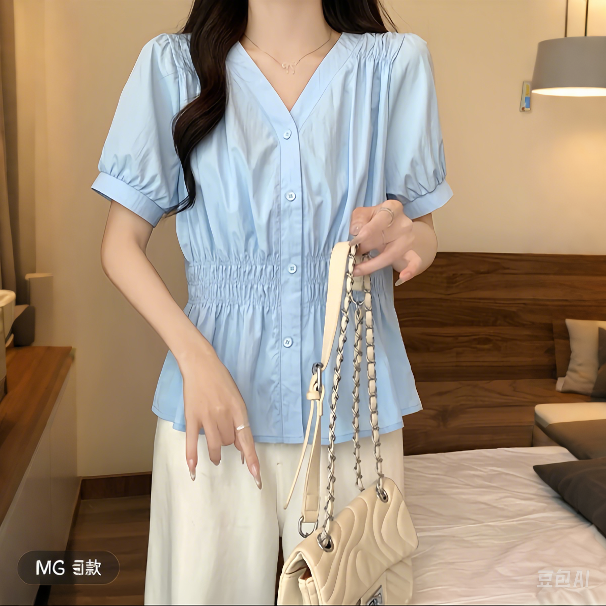 Concert Outfit Plus Size V- Neck Short Sleeve Summer Top Flattering Curvy Figures