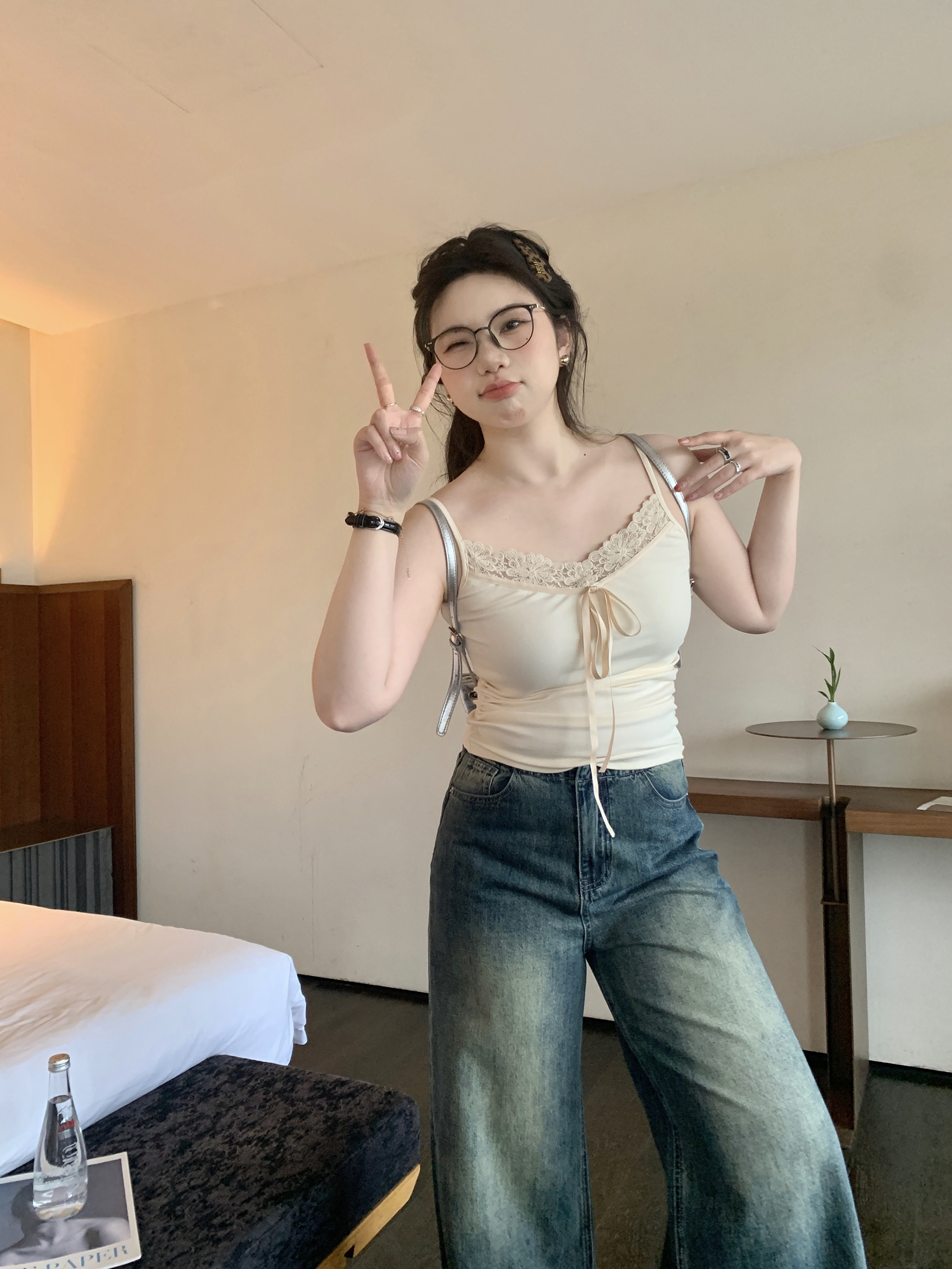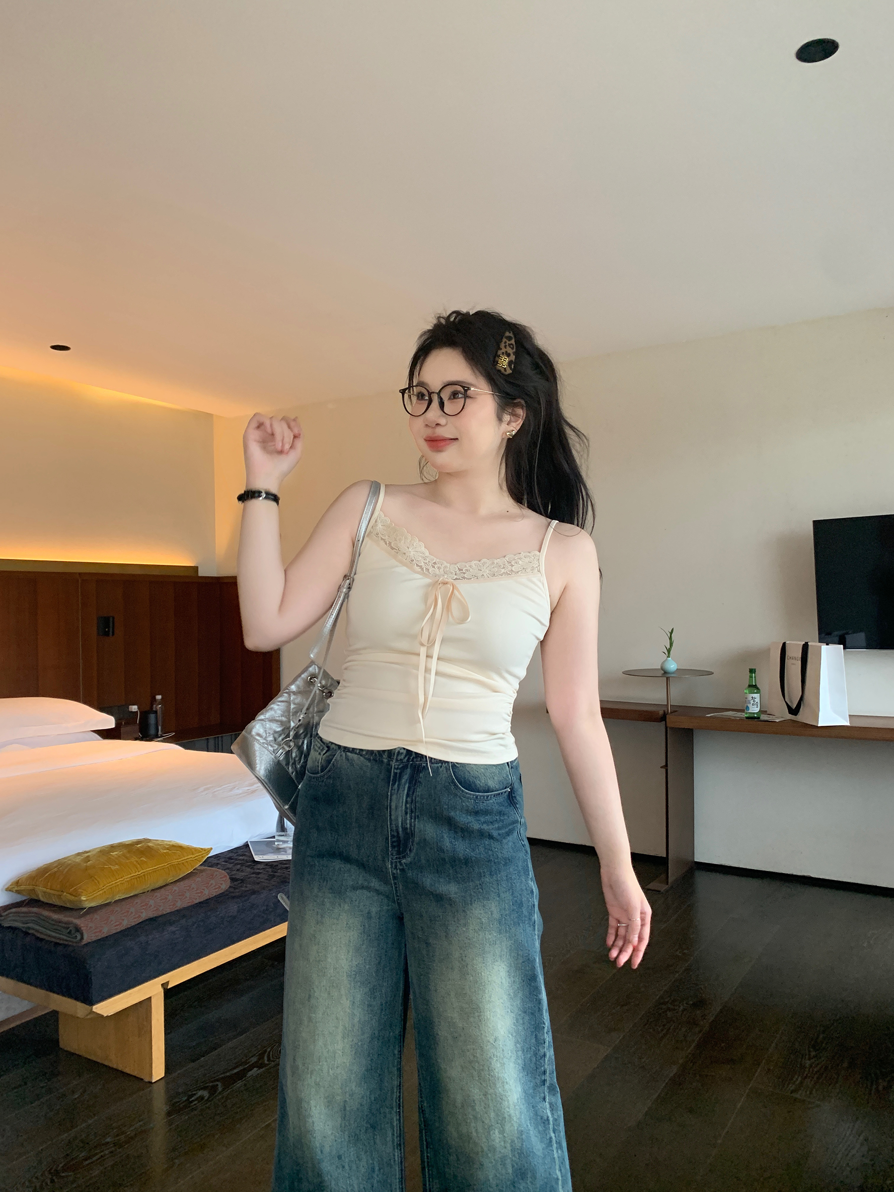Concert Outfit Plus Size White Lace Edge Layered Camisole Tank Top Slightly Chubby Inner Layer, Y2K, Korean Outfits