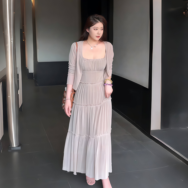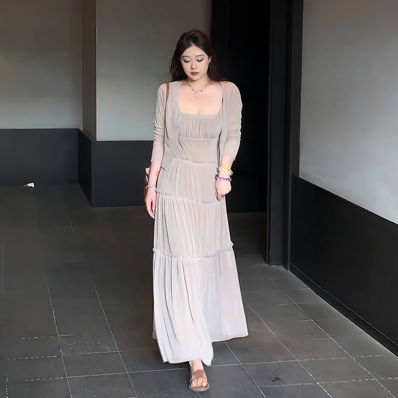 Elevate your summer wardrobe with our Plus-Size Women’s French-Style Pleated Camisole Dress, complete with a chic long sleeve cardigan. Designed specifically for curvy fashionistas, this elegant set features a flattering pleated design that enhances your silhouette while providing a comfortable fit. Perfect for layering, the lightweight cardigan adds versatility for any occasion, making it an ideal cover-up for beach days or casual outings. Don’t miss out on this stylish ensemble—add it to your cart today!