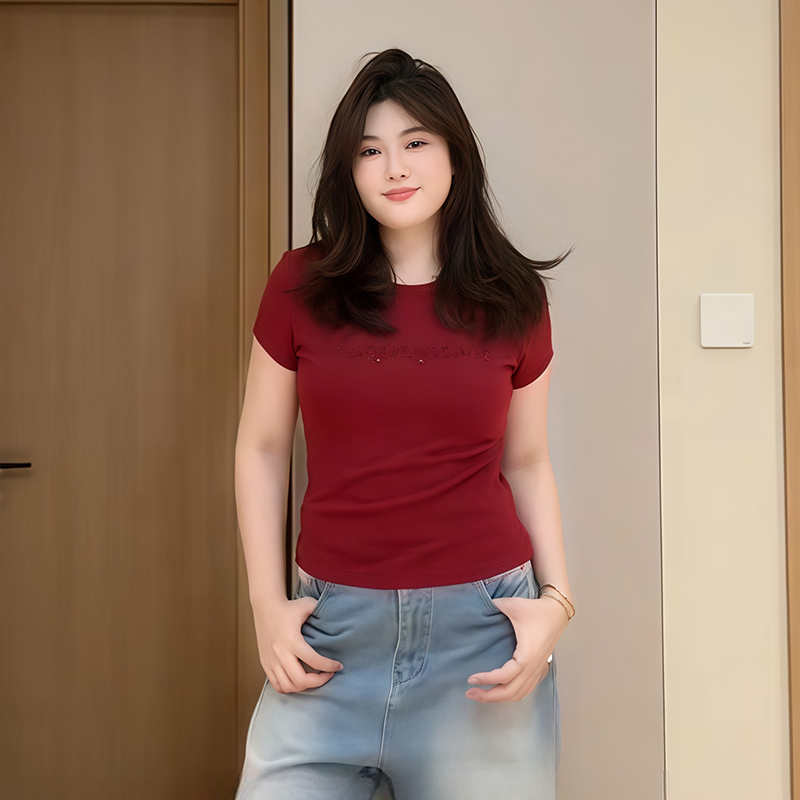 Elevate your summer wardrobe with our Plus-Size Women’s Rhinestone Letter Cropped T-Shirt, designed for a chic and casual look. This American-style slim fit top features sparkling rhinestones that add a touch of glamour, while the short sleeves and cropped cut keep you cool and stylish during warm days. Perfect for pairing with high-waisted jeans or shorts, this trendy tee is a must-have for any fashion-forward woman. Don’t miss out on this essential piece—add it to your cart today!