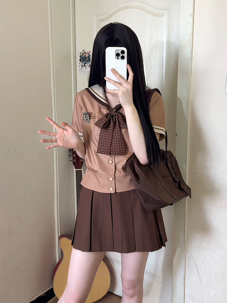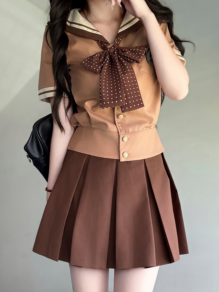 Color | Brown short skirt 42cm, Brown short-sleeved top + bow tie, Brown suit (short-sleeve top + short skirt + bow tie) |