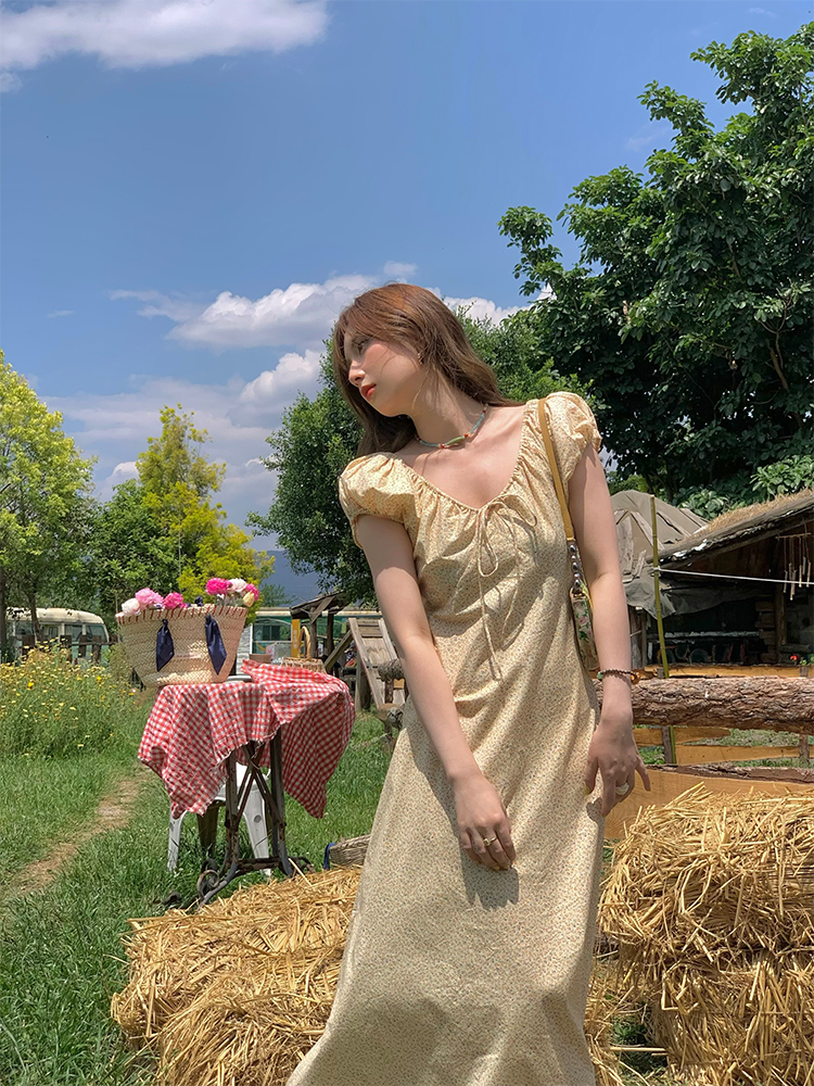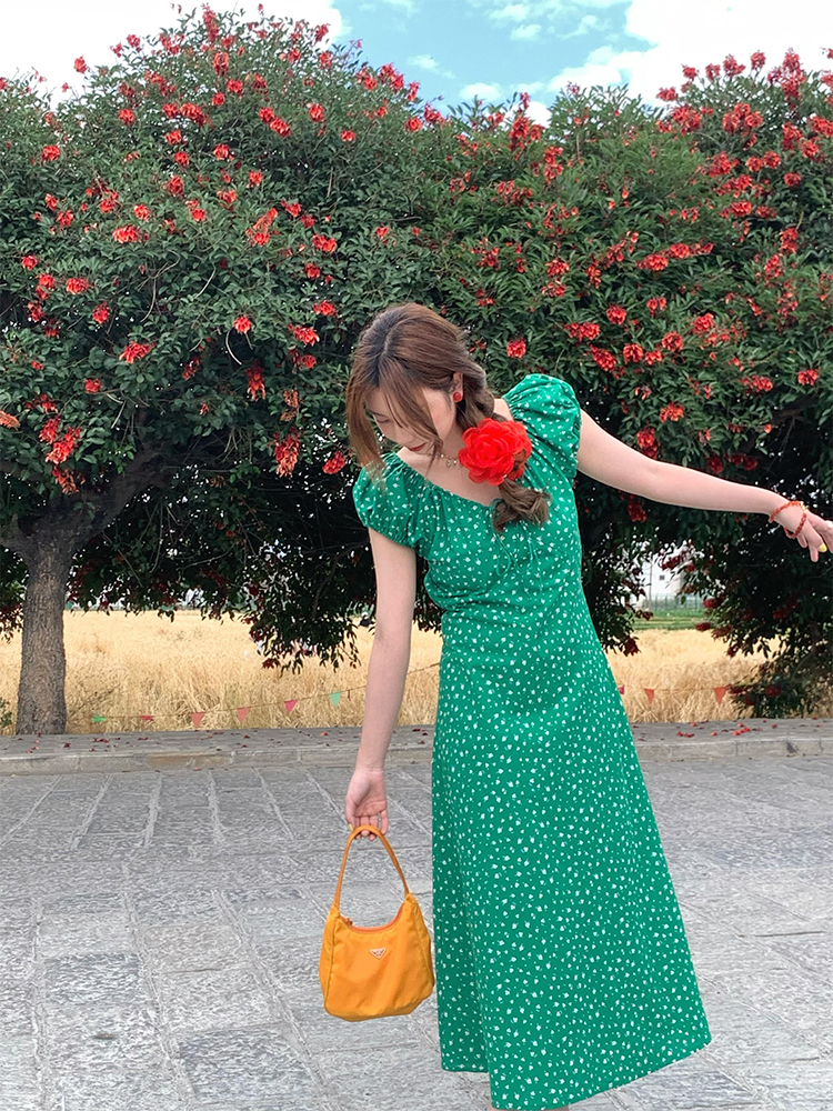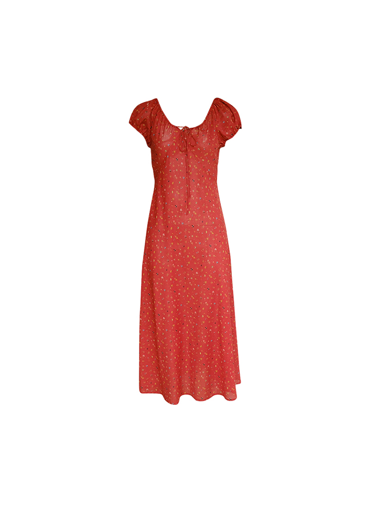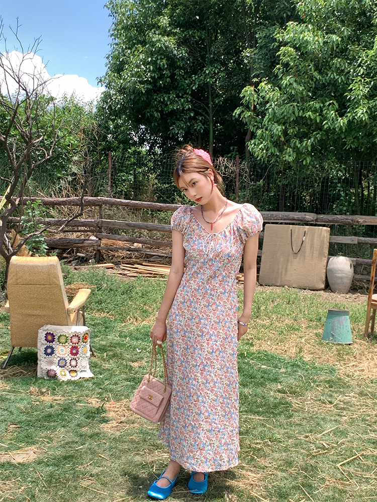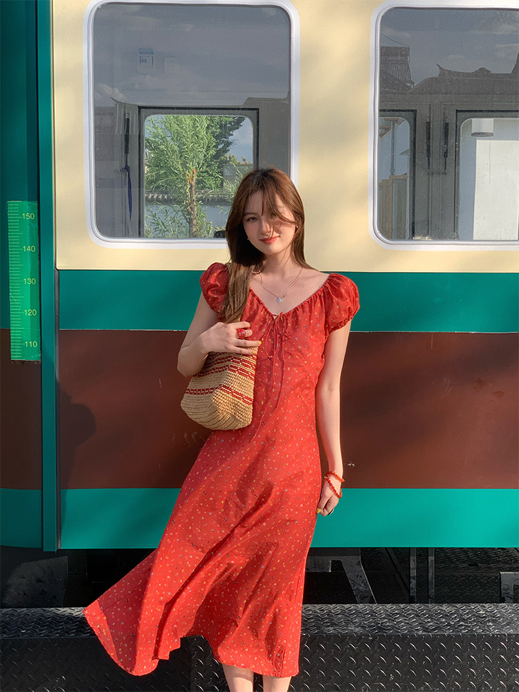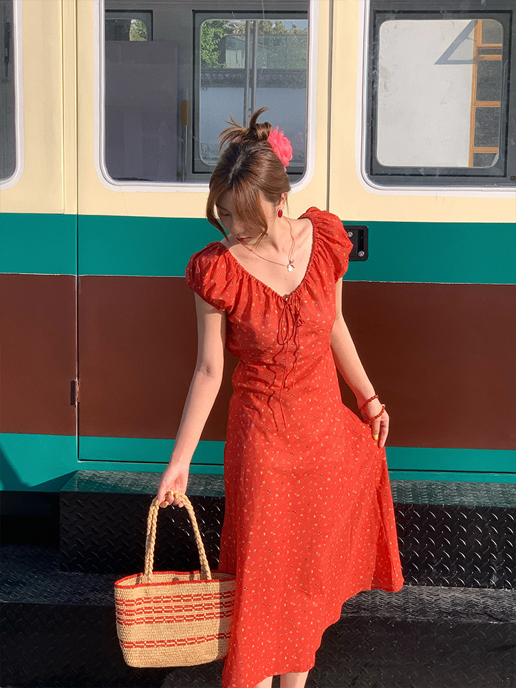Concert Outfit Red Floral Dress Women, Loose Puff Sleeve Long Dress, Summer Flowers, Vintage, Summer Outings