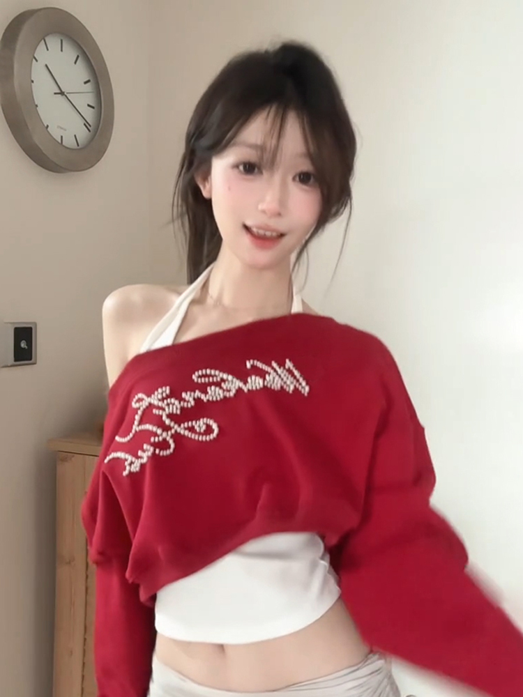Elevate your spring wardrobe with this stunning Red Off-Shoulder Sweatshirt Set for Women. Featuring a trendy loose fit and stylish long sleeves, this two-piece outfit is adorned with eye-catching rhinestone letter details that make a bold fashion statement. Perfect for casual outings or lounging in style, this set combines comfort and chic effortlessly. Don’t miss out on this must-have addition to your collection—add to your cart today!
