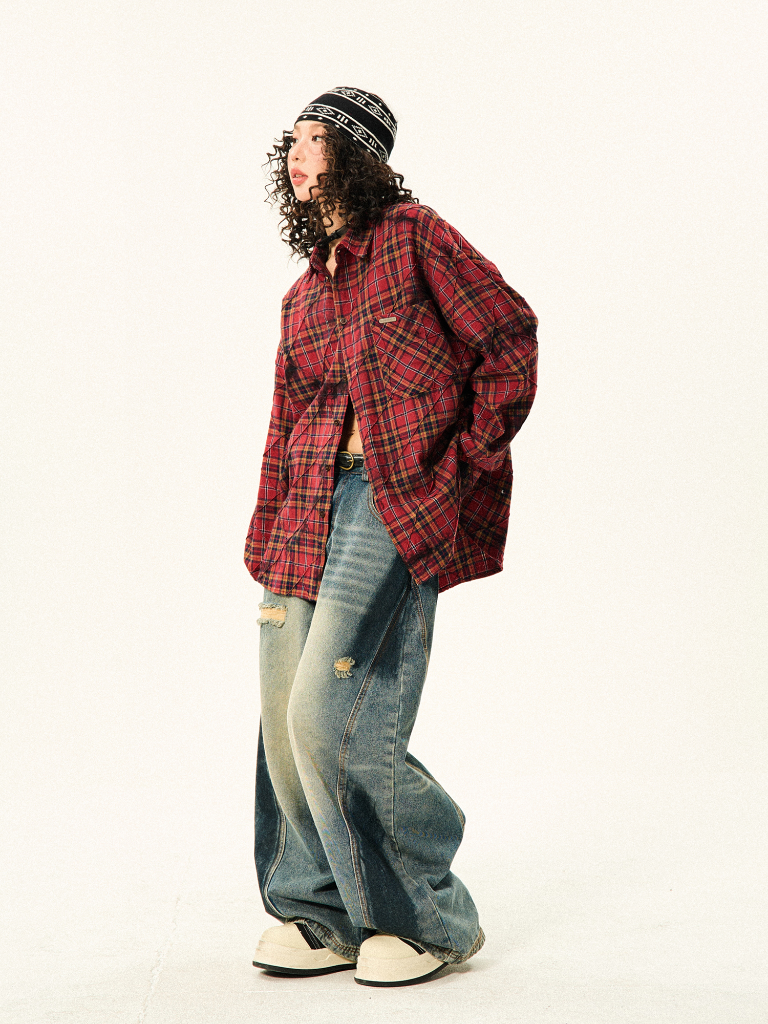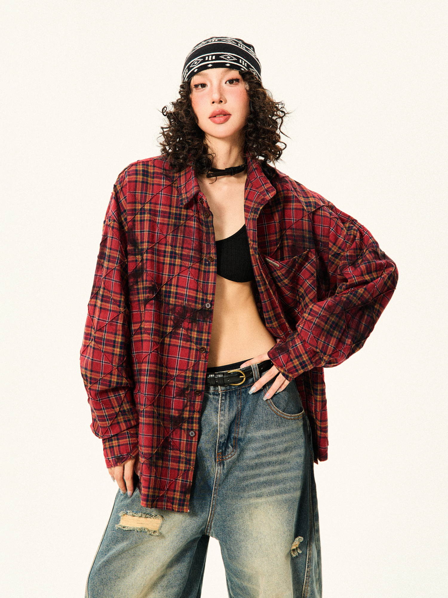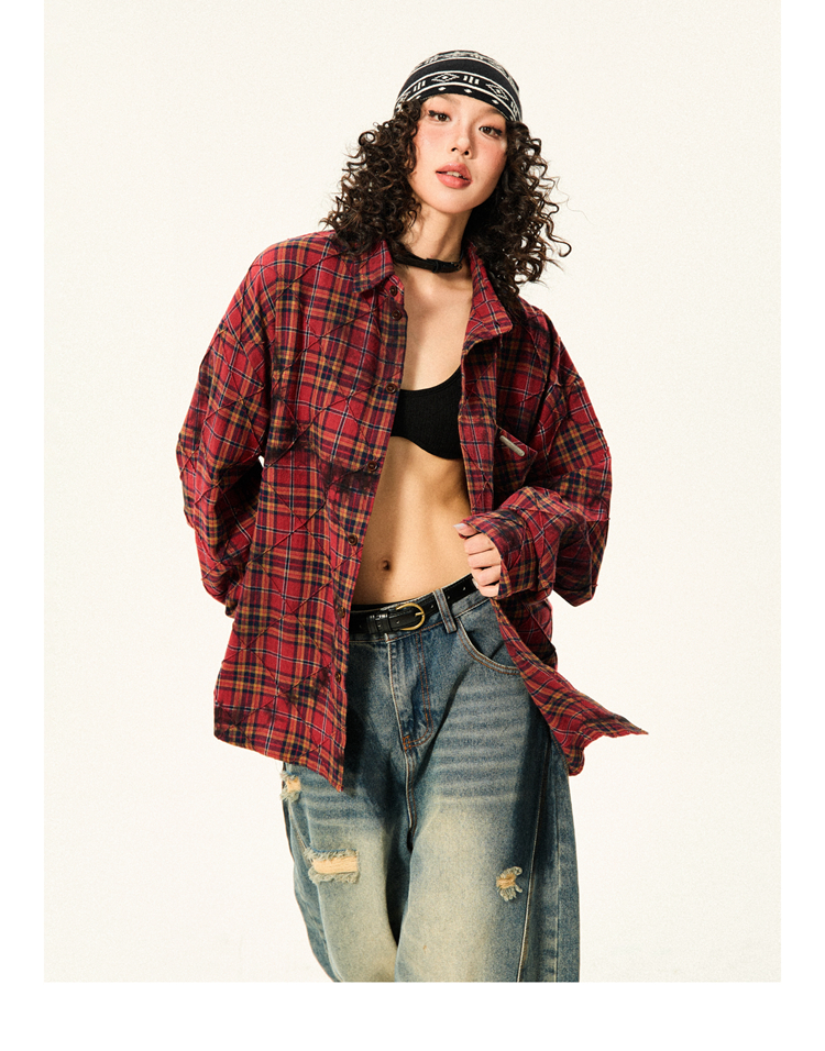 Vintage Red Plaid Long Sleeve Shirt: Perfect Concert Outfit for Autumn