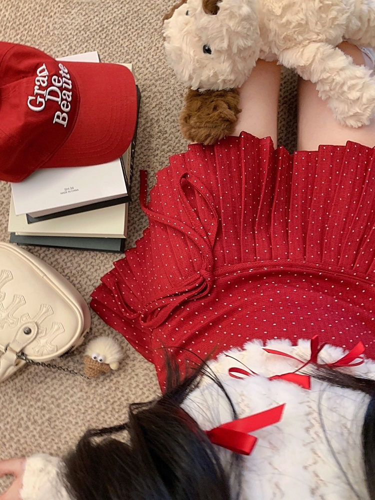 Concert Outfit Red Polka Dot Pleated High Waisted A Line Skirt Women Spring Summer Petite Figures