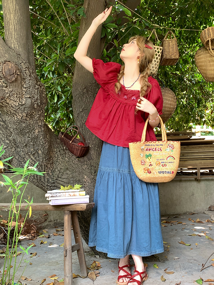 Elevate your summer wardrobe with our Retro Embroidered Square Neck Puff Sleeve Top and Women’s Summer Ramie Half Skirt Set. This vintage-inspired outfit features a flattering square neckline and romantic puff sleeves, perfectly paired with a lightweight ramie skirt for a chic, breathable fit. Ideal for any occasion, this stylish ensemble will keep you comfortable and looking fabulous all day long. Don’t miss out on this timeless look—add it to your cart today!