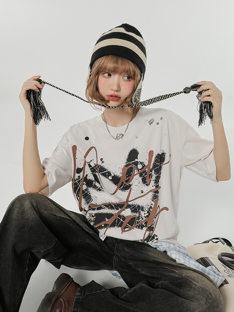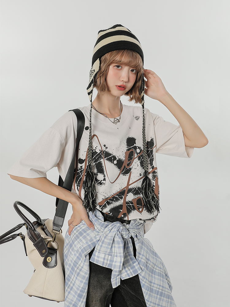 Concert Outfit Retro Graffiti Print Neck Short Sleeve T- shirt Women Loose Slim Fit Summer Street Top High-quality product featuring summer fits, concert outfit ideas, streetwear fashion women and more. Modern design that fits the latest trends. Premium materials ensure durability and comfort. Order now for special offers! Product designed with attention to every detail. Suitable for all occasions and personal styles.