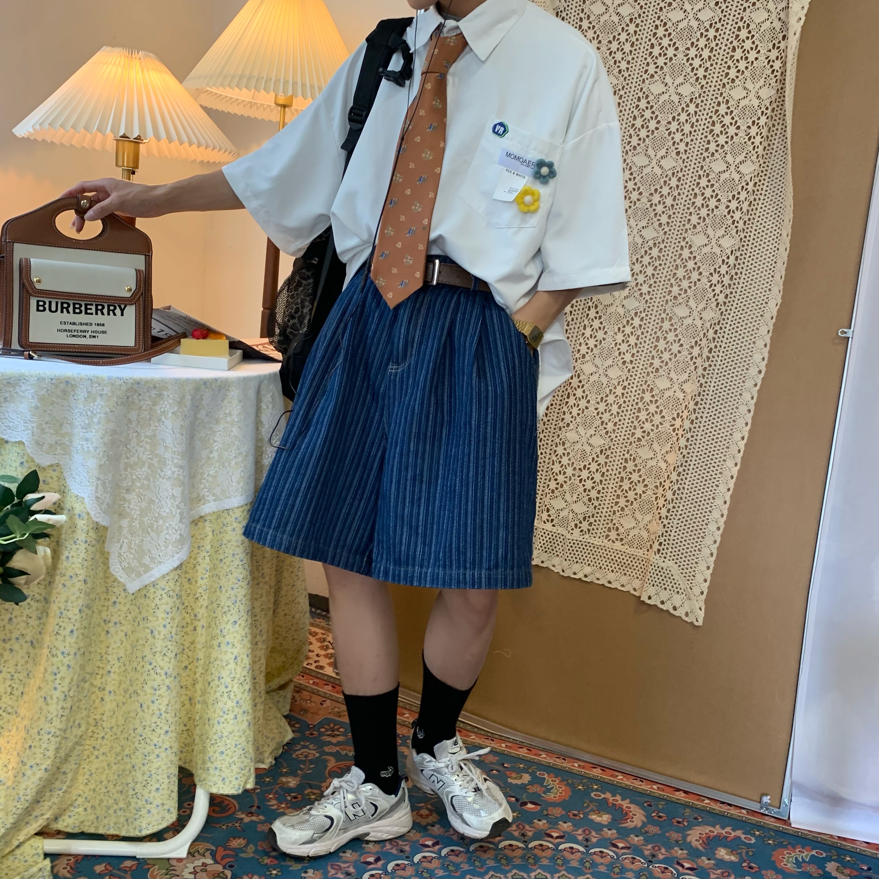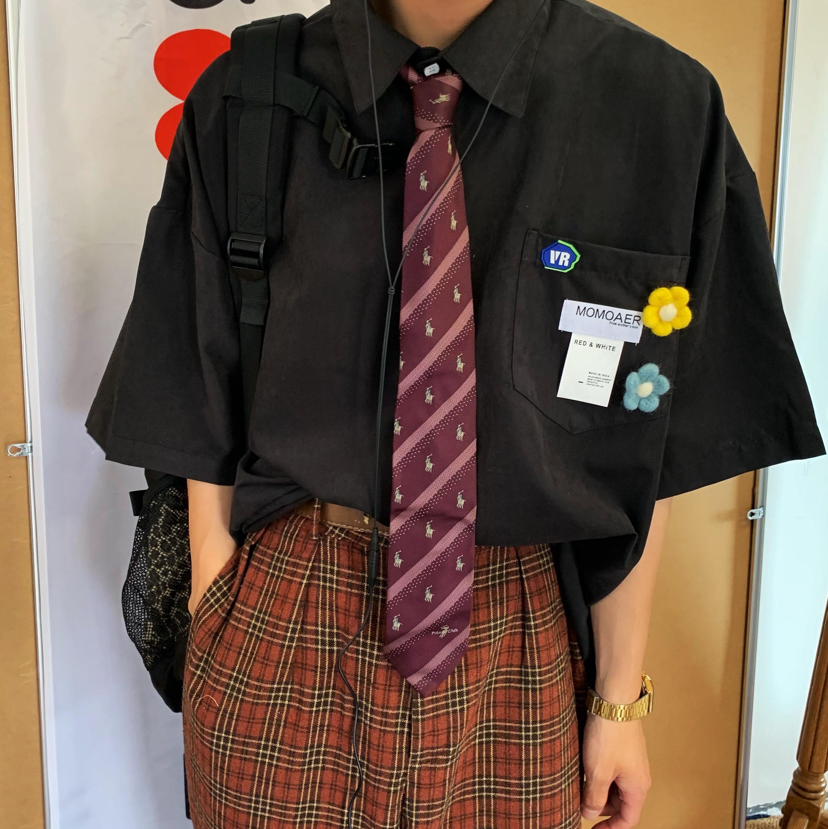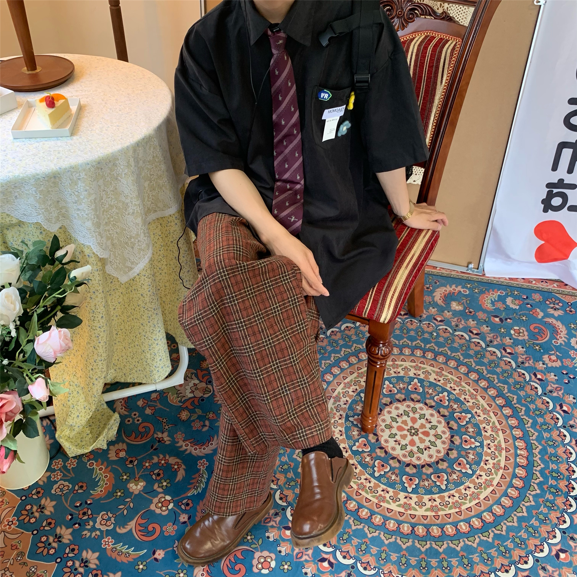 Concert Outfit Retro Short Sleeve Shirt Brooch Flower Loos – Concert Outfit