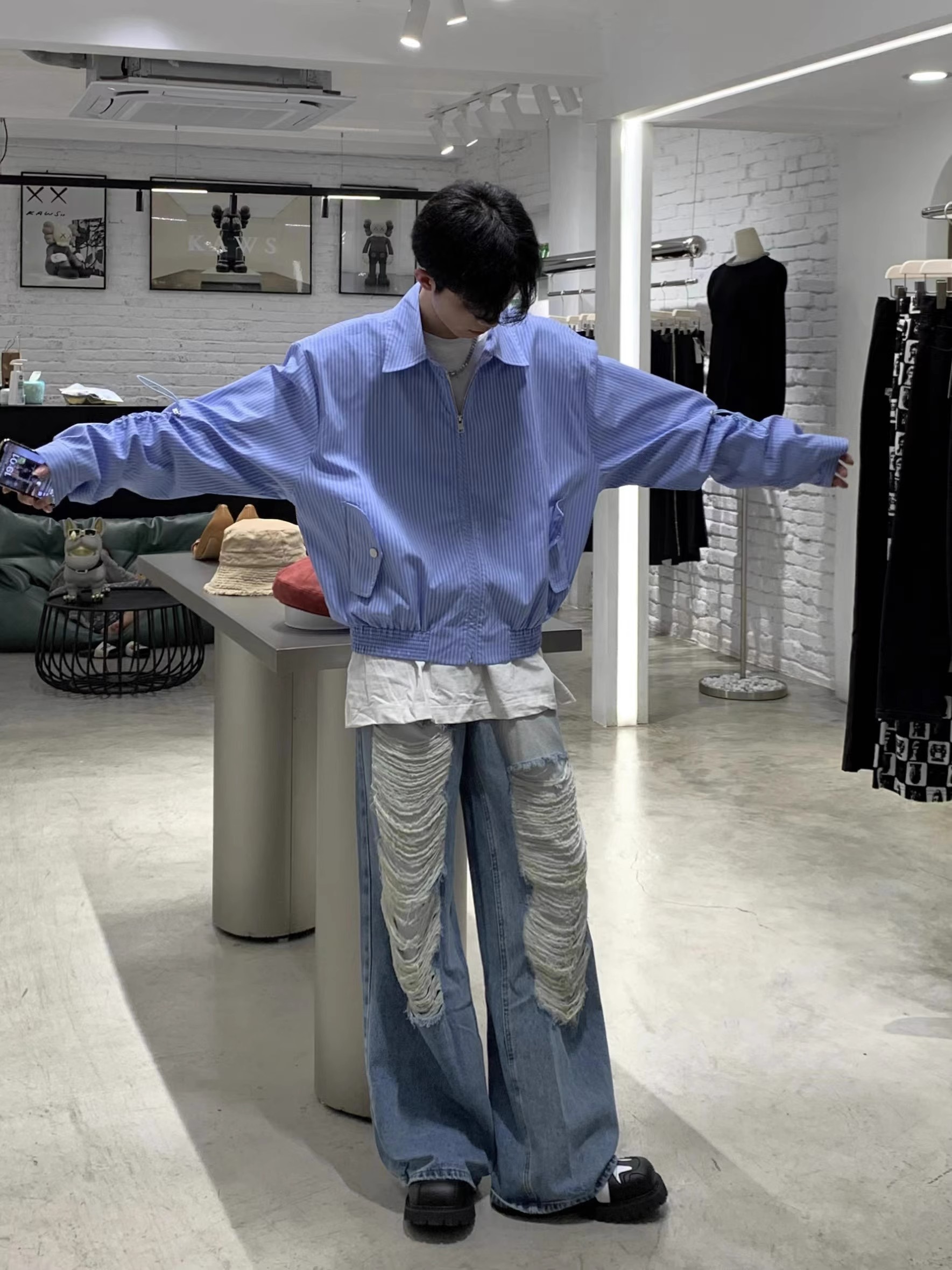 Elevate your autumn wardrobe with our Retro Japanese-Style Blue Striped Shirt for Men, featuring a loose fit and trendy shoulder padding for a modern twist on classic fashion. This versatile jacket is perfect for layering, offering both comfort and style that effortlessly complements any casual outfit. Don’t miss out on this Y2K fashion essential—add it to your cart today and redefine your look!