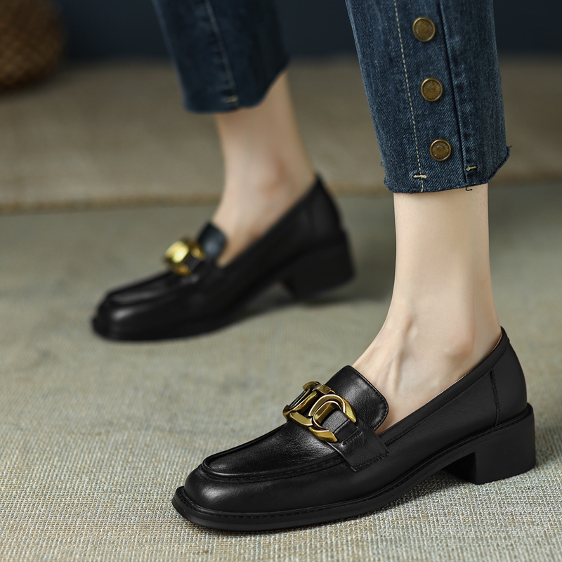 Concert Outfit Retro Metal Buckle Chunky Heel Leather Shoes Italian Footwear Spring, Autumn