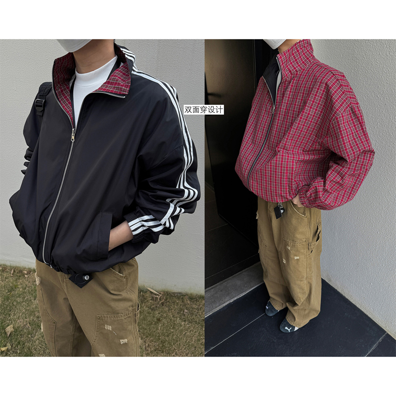 Elevate your style with our Retro Patchwork Reversible Jacket, designed for both men and women. This casual three-stripe plaid layering piece is perfect for spring and autumn commuting, offering versatility and comfort in every wear. Crafted with a relaxed fit, it features a unique patchwork design that adds a trendy touch to any outfit. Stay fashionable while enjoying the benefits of two looks in one jacket. Don’t miss out on this essential addition to your wardrobe—add to your cart today!