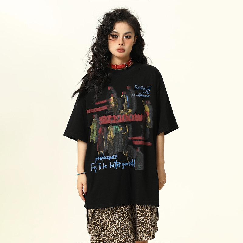 Concert Outfit Retro Tie Dye Letter Short Sleeve T- shirt Men, Women Summer Streetwear