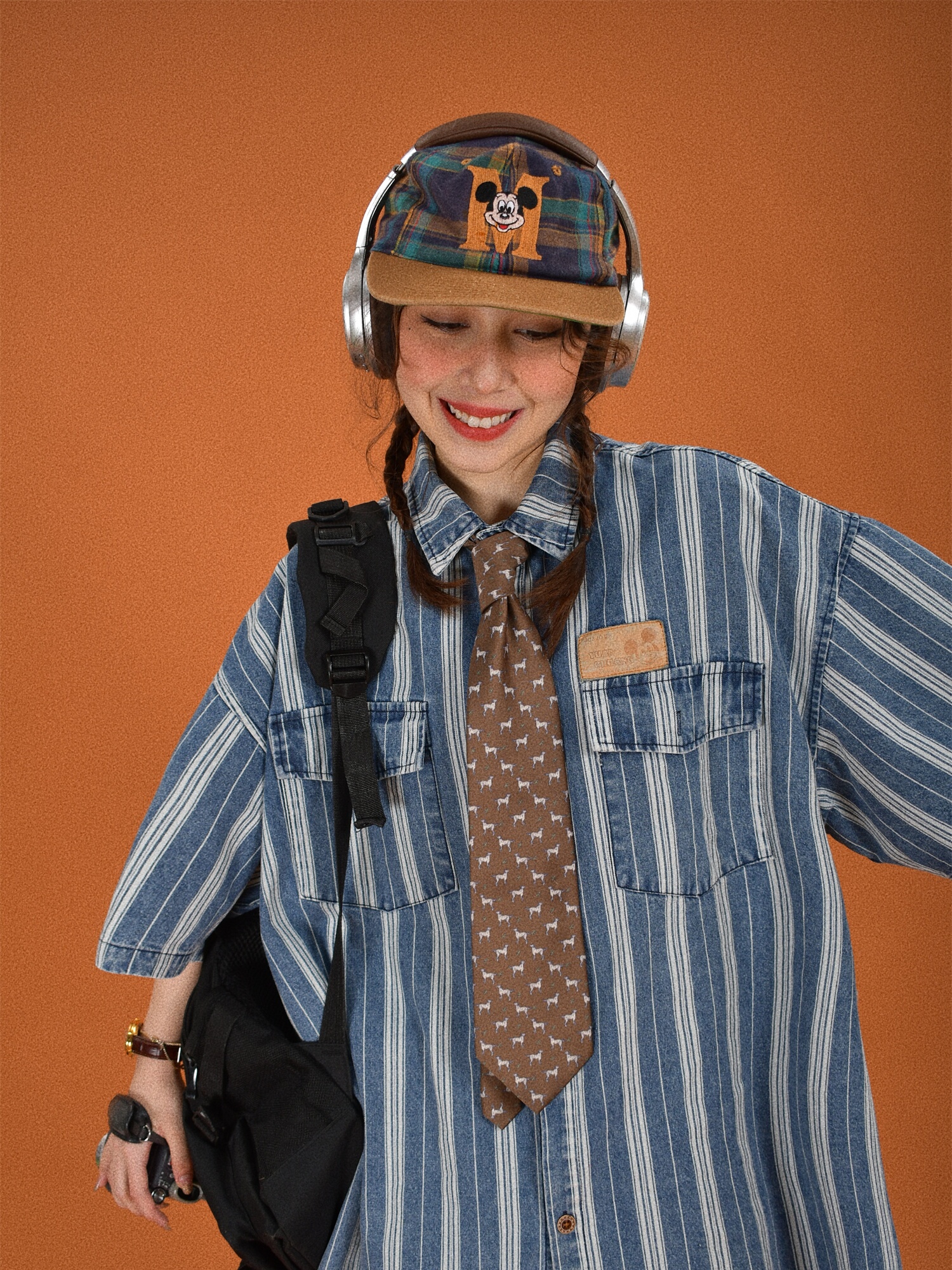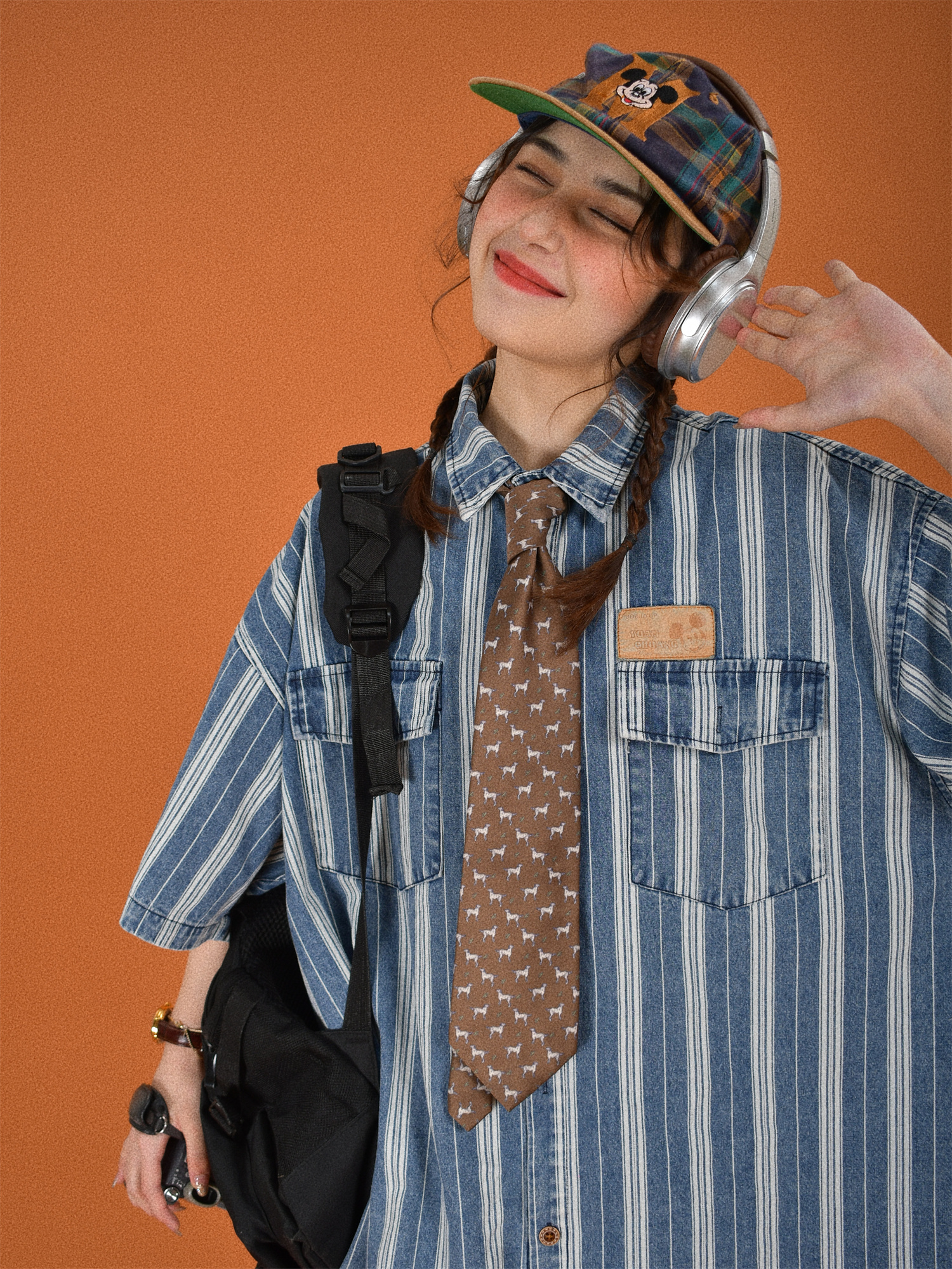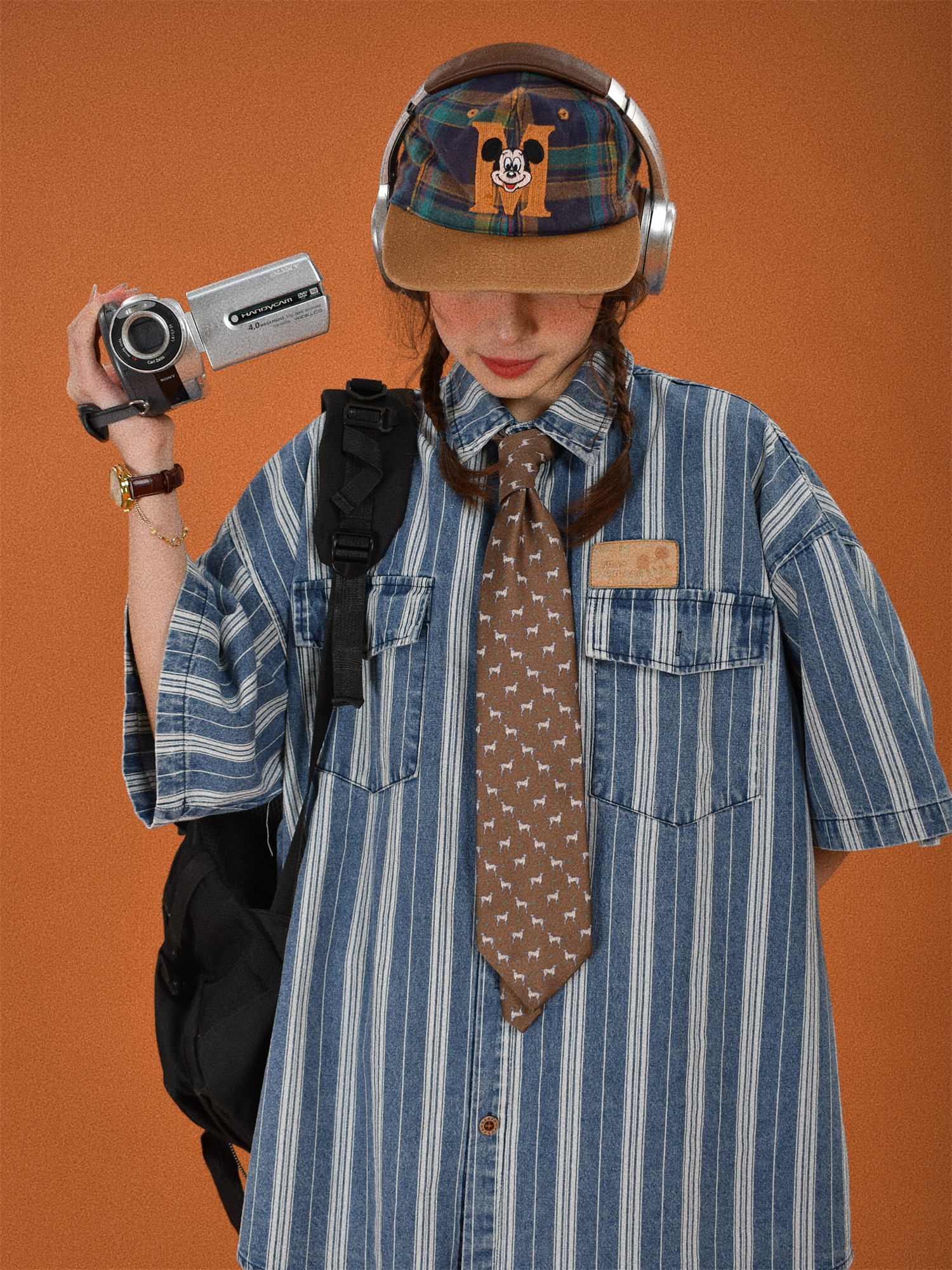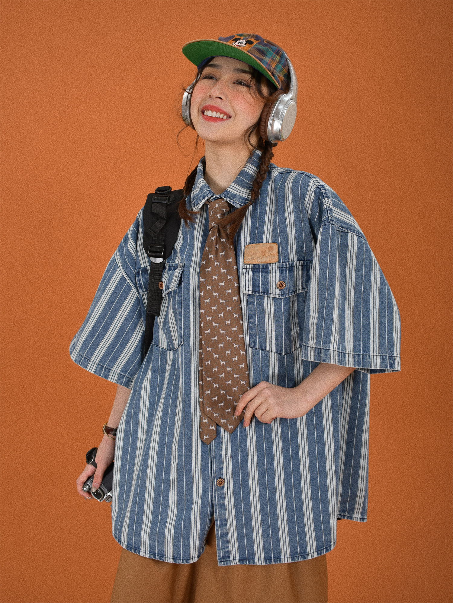 Embrace a laid-back summer vibe with our Retro Washed Striped Denim Short Sleeve Top, designed for those who appreciate vintage flair and casual comfort. This loose fit shirt features charming cartoon graphics that add a playful touch to your wardrobe, making it perfect for any outing. Crafted for breathability and style, it’s an effortless choice to pair with shorts or jeans. Don’t miss out on this must-have piece—add it to your cart today!