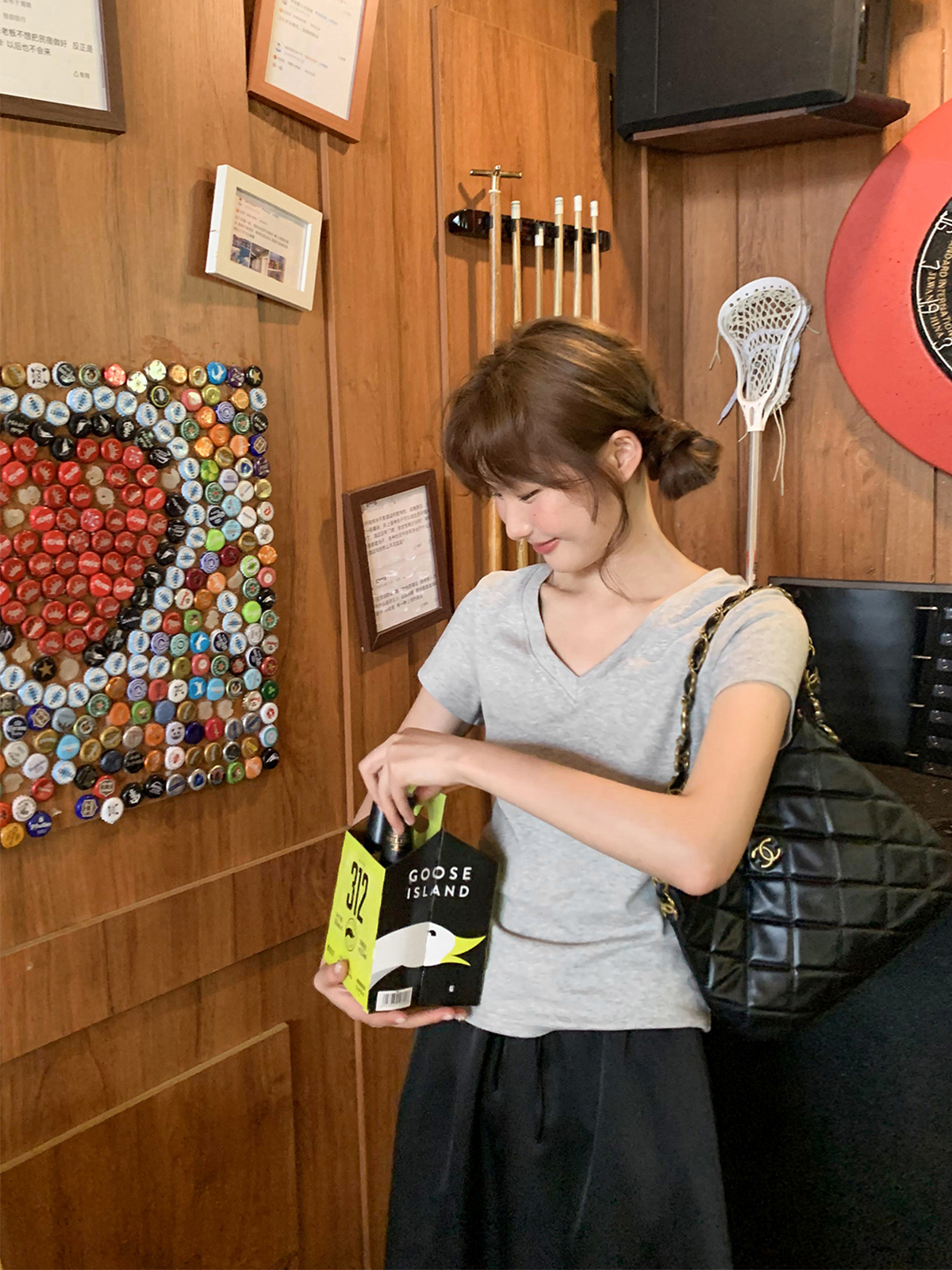 4 reviews for Concert Outfit Ribbed V- Neck Fitted Short Sleeve Women T- shirt Slim Solid Top Summer, Casual