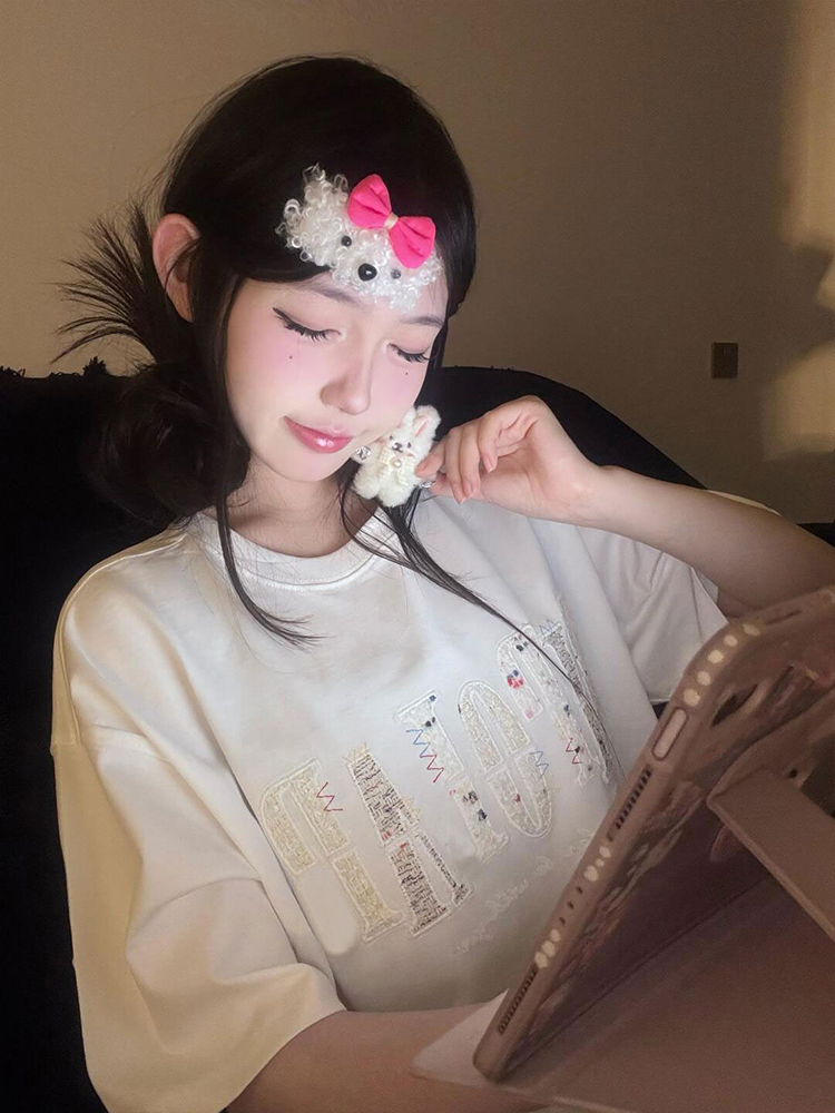 Elevate your summer wardrobe with our Round Neck Short Sleeve T-Shirt for Women, designed for a relaxed yet stylish look. This heavyweight casual top features eye-catching letter embroidery that adds a playful touch to your outfit, while its loose fit ensures all-day comfort and breathability. Perfect for pairing with jeans or shorts, this American-style tee is a must-have for effortless chic. Don’t miss out on this versatile essential—add it to your cart today!