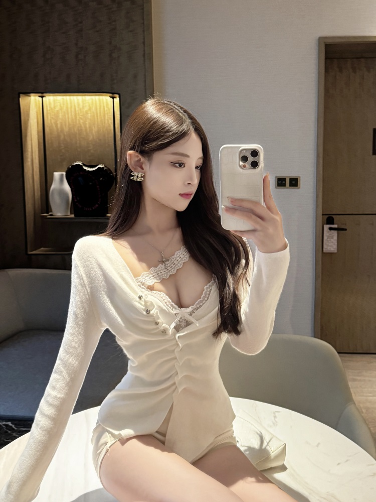 | Color | Blue knitted sweater, White knitted sweater, White lace lingerie |