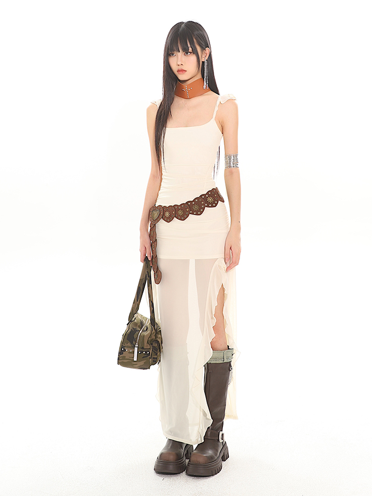 Concert Outfit Ruffled Strap Mesh Girl Dress ummer Vietnamese, Y2K