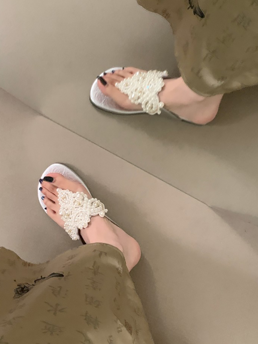 Concert Outfit Sheepskin Pearl Thong Flat Sals Women Bohemian Beach Flip Flops, Summer