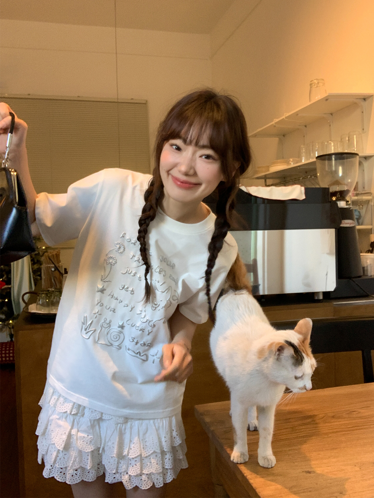 Concert Outfit Silver Glitter Foam Letter Printed Short Sleeve Women Loose Pure Cotton Neck Top Spring Summer