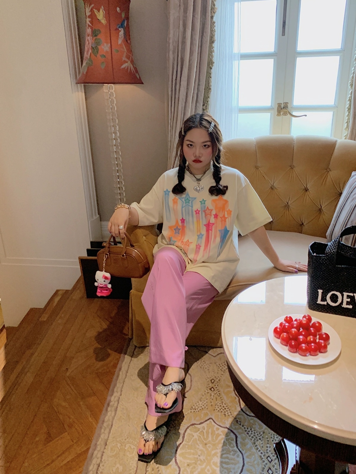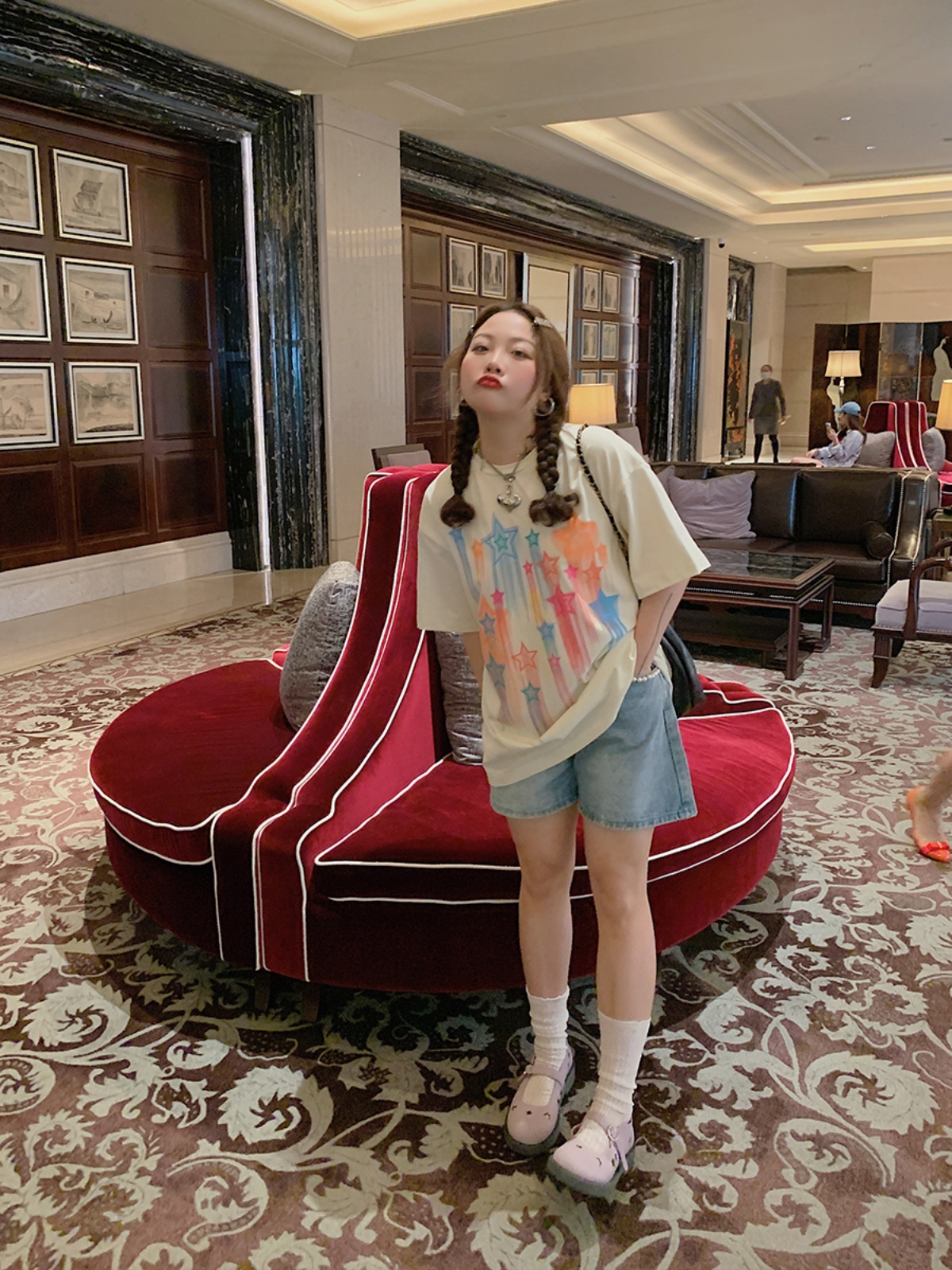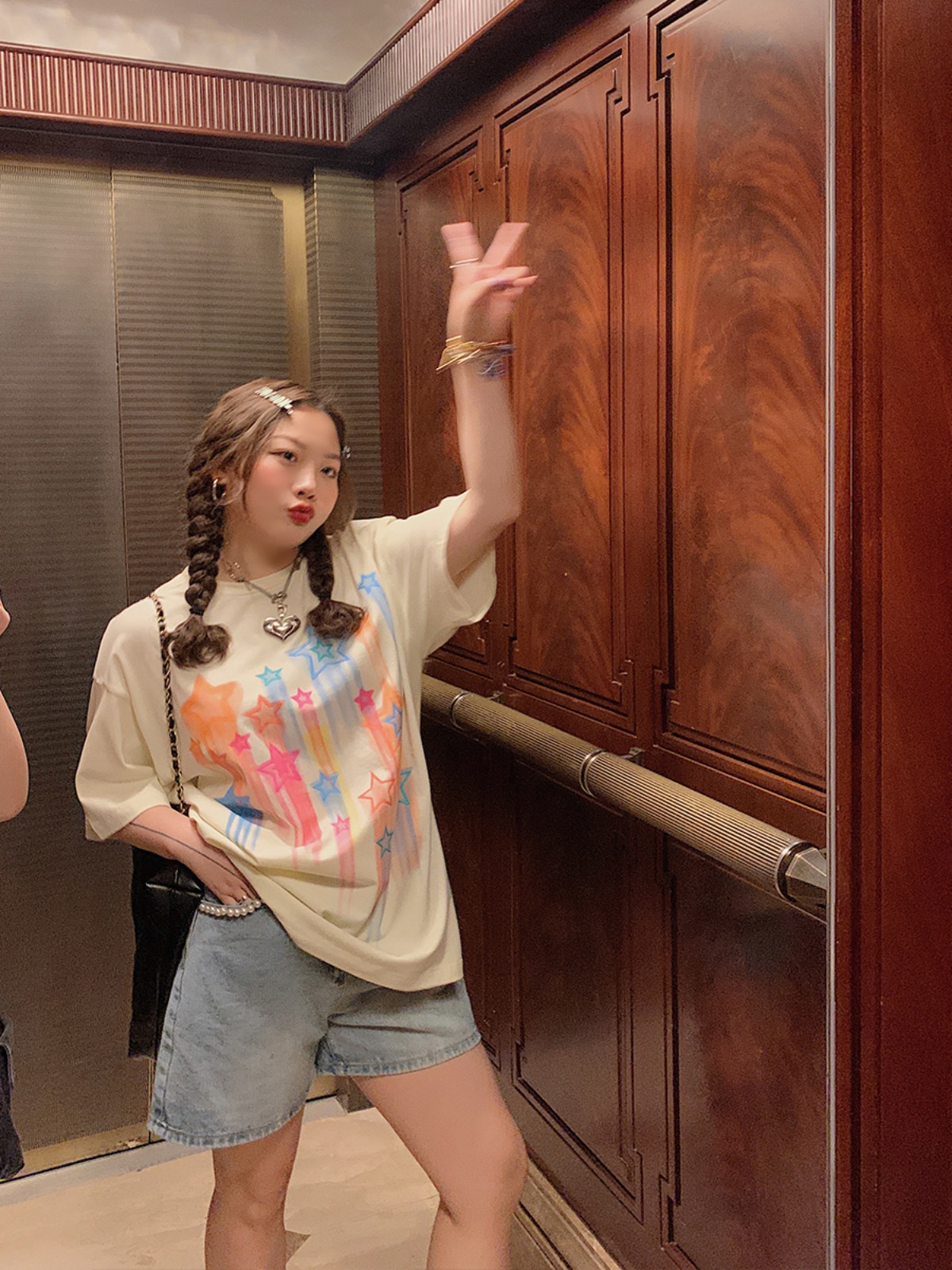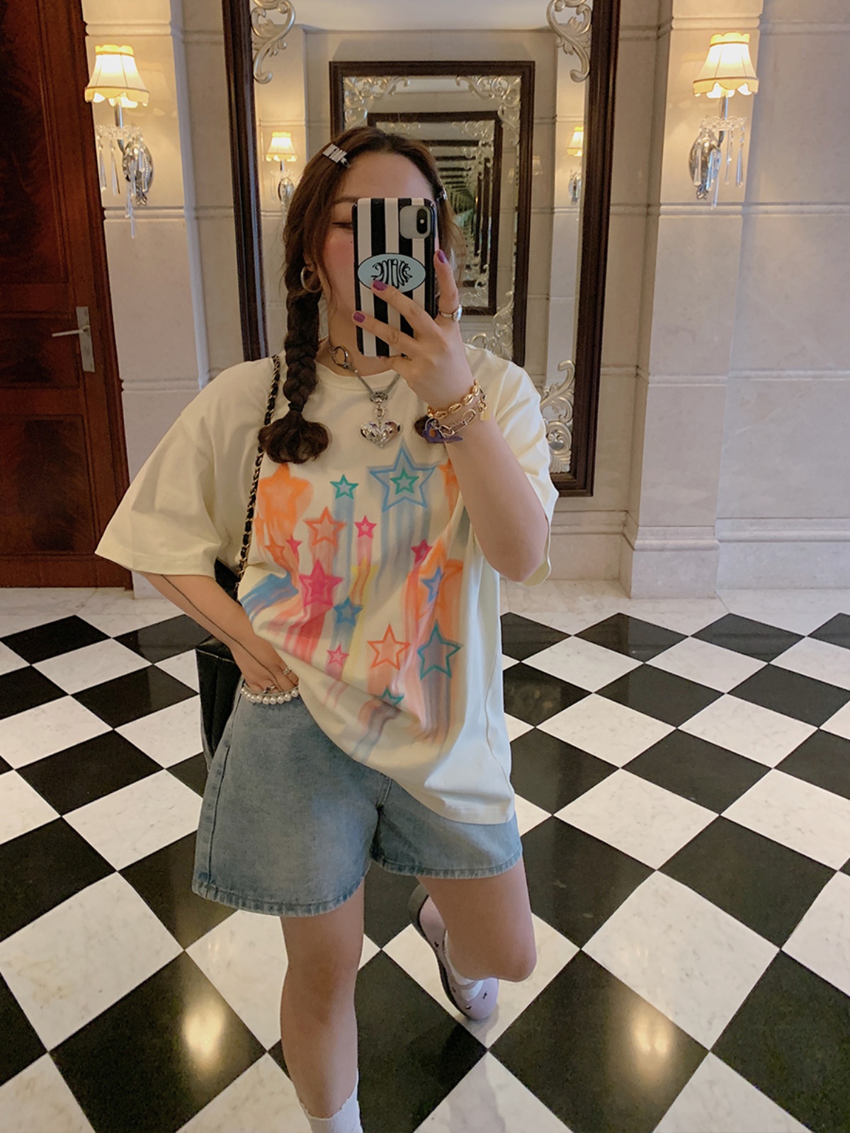 Concert Outfit Star Print Short Sleeve T- shirt Women, Plus Size Neck Summer Top, Dopamine Dressing