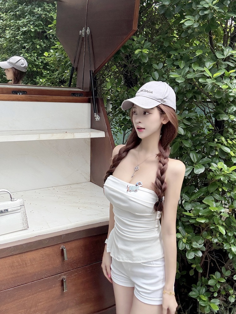 | Color | Gray fluffy skirt, Navy blue coat, Navy blue strapless top, White coat, White strapless top |