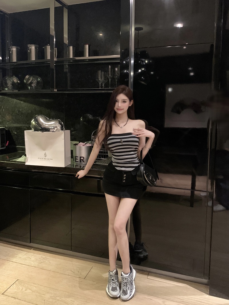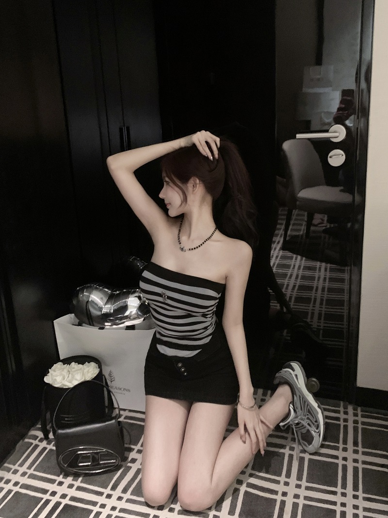Concert Outfit Striped Strapless Camisole Women Slim Fit Short Top, Y2K Outfits